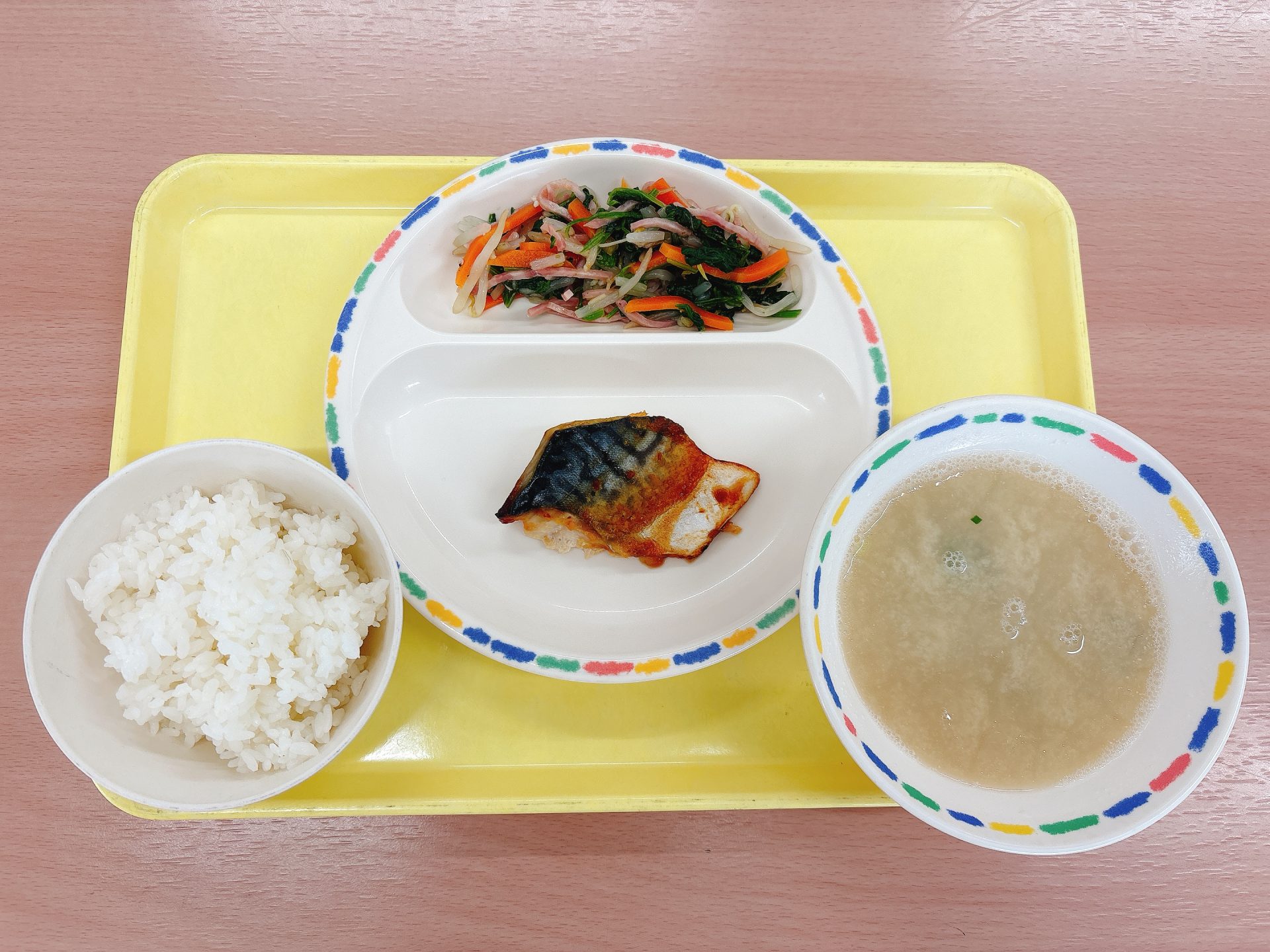 ・ご飯・さばの西京焼き・豆乳汁・ほうれん草のサラダ
