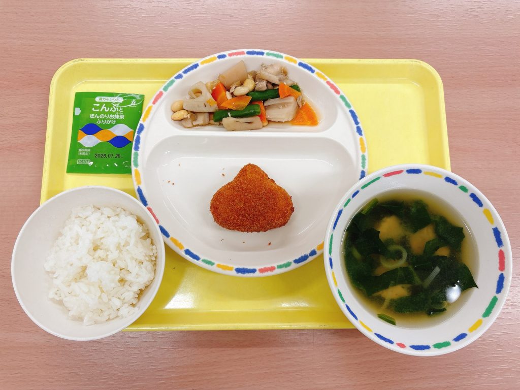 ・ご飯・栗コロッケ・あじのつみれ汁・五目煮・こんぶふりかけ