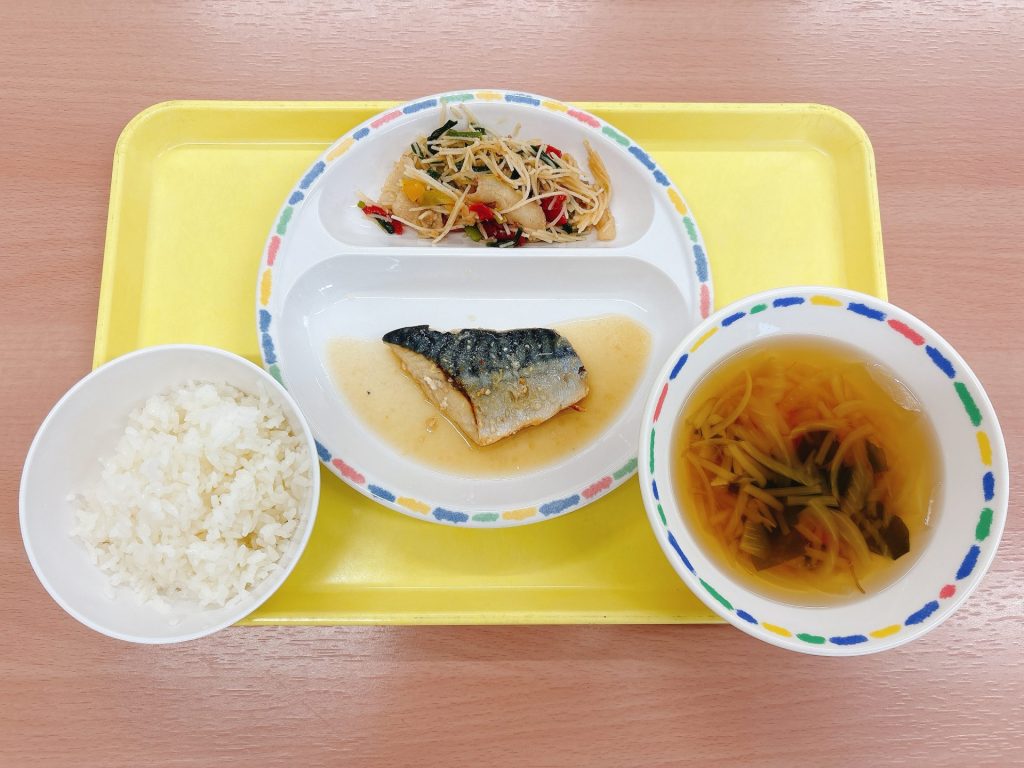 ・ご飯・さばのみそ煮・わかめのすまし汁・ビーフンの炒め物