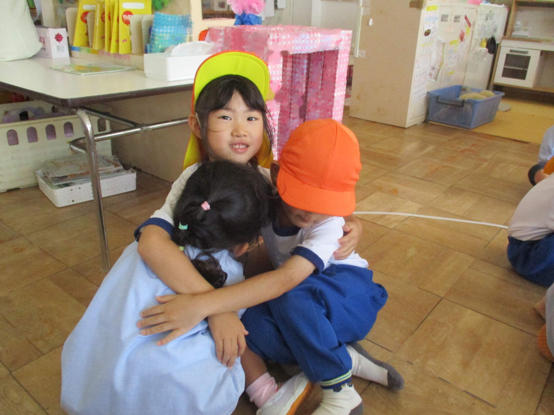 今ではとっても仲良くなった年中組のお友達!触れ合い遊びでは、にっこにこ♡