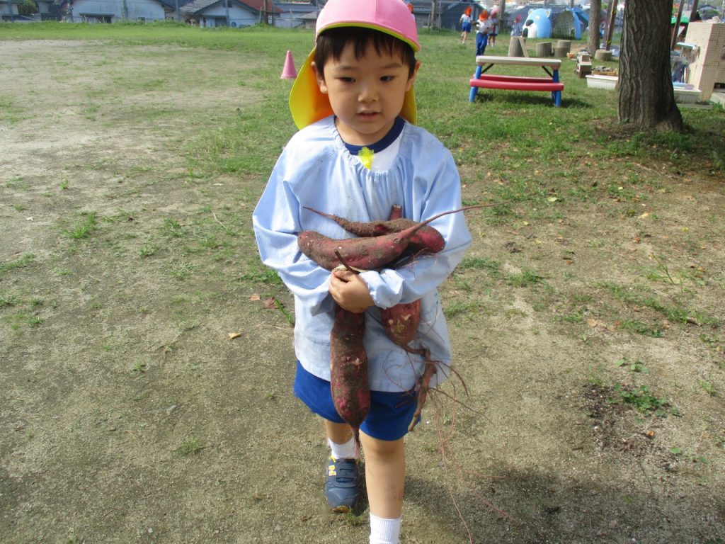 小さな腕いっぱいに、大きなサツマイモを大事そうに抱えて運ぶ姿がとても可愛いかったです♪