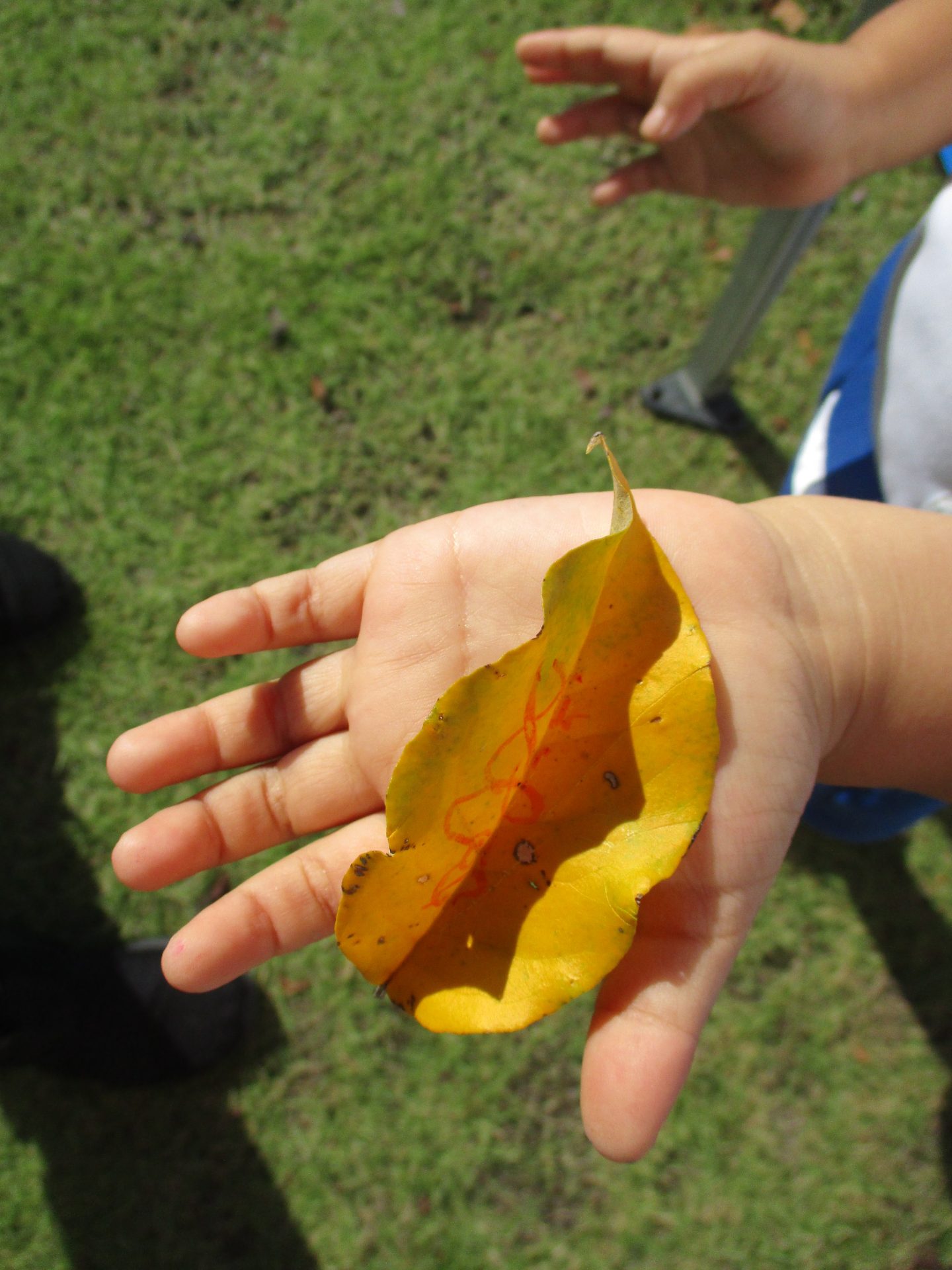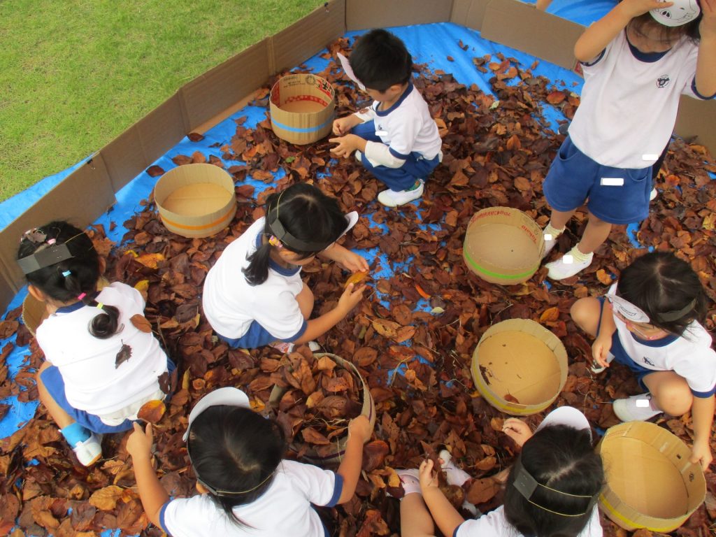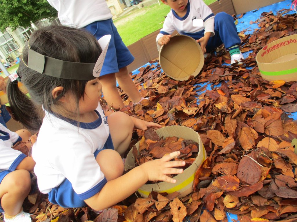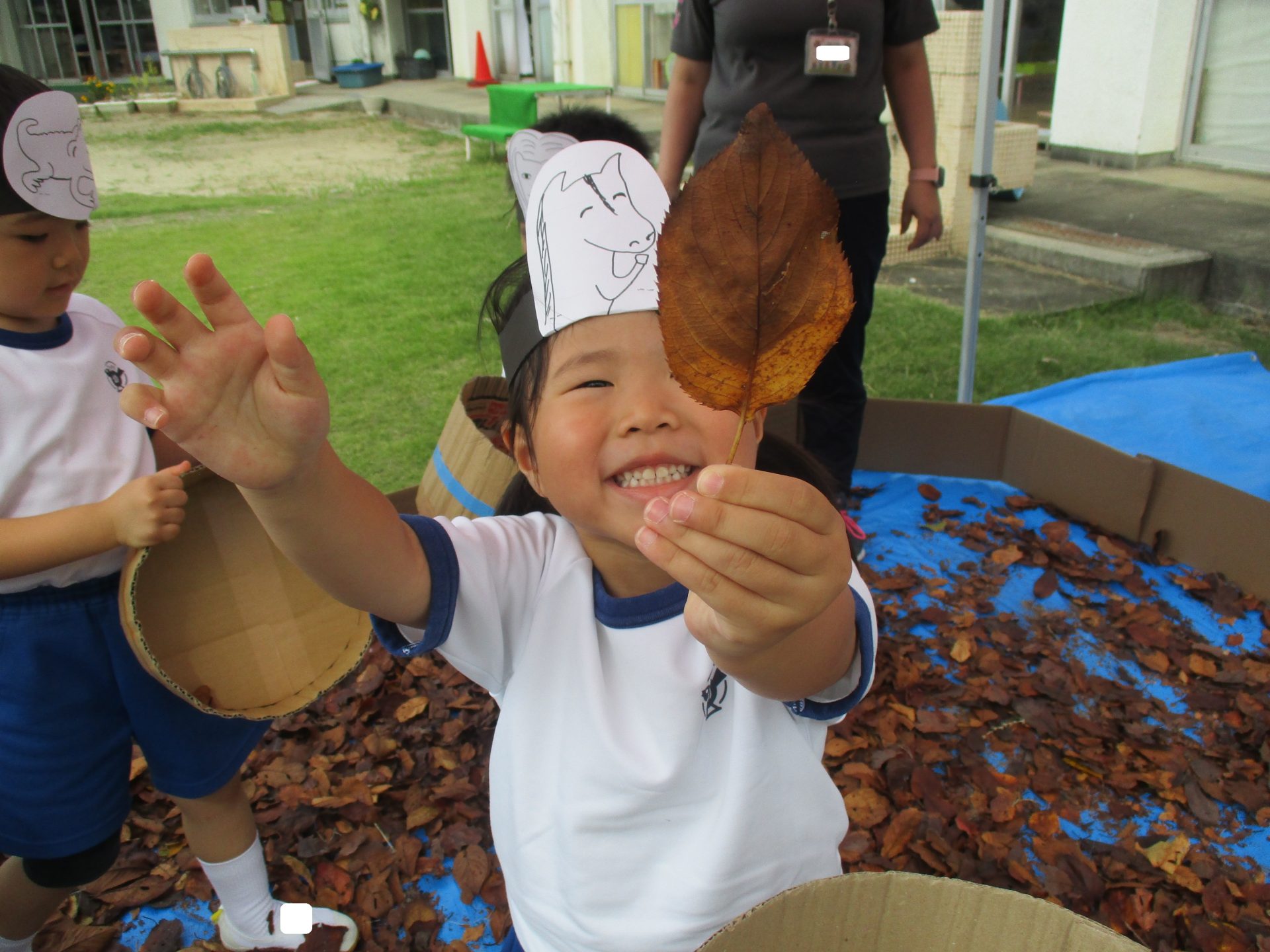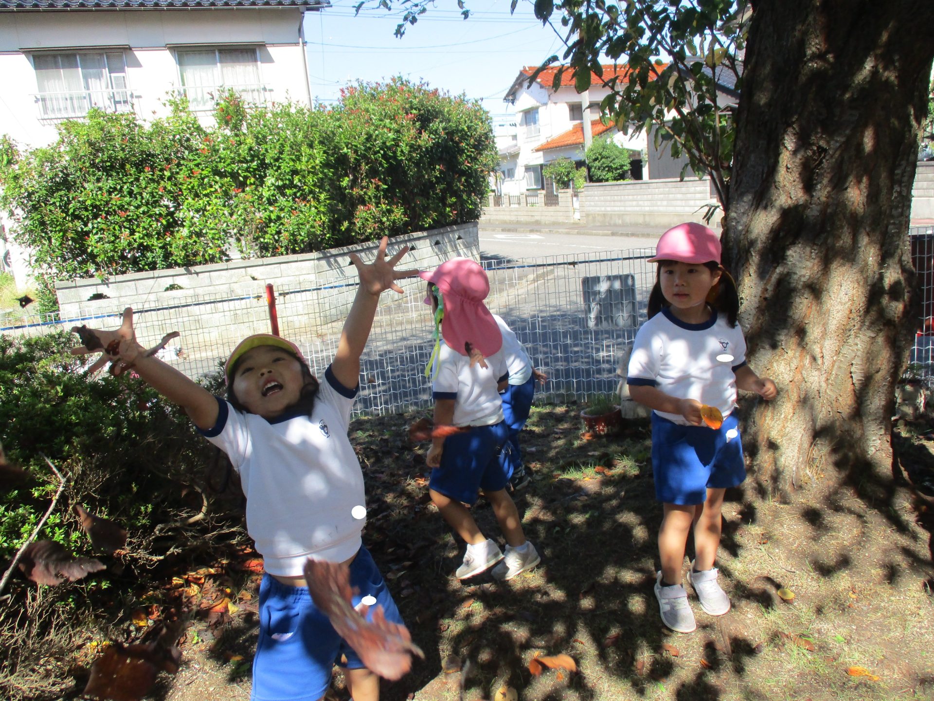 色々な色や形の葉っぱを見つけたり葉っぱのシャワーに大喜びの子ども達でした。