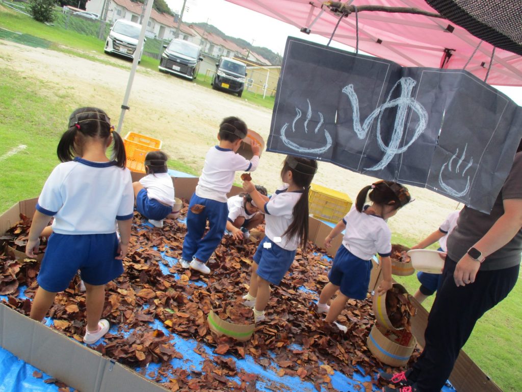 枯れ葉の感触や匂いを感じたり・・・気持ちいい~!遊んだ後には、お茶を飲みながら「さっぱりしたなあ~」とクスっと笑える可愛い会話が聞こえてきました♪