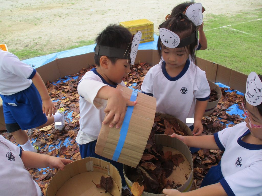 畑の隅では…大きなサツマイモの劇ごっこも楽しむことができました!