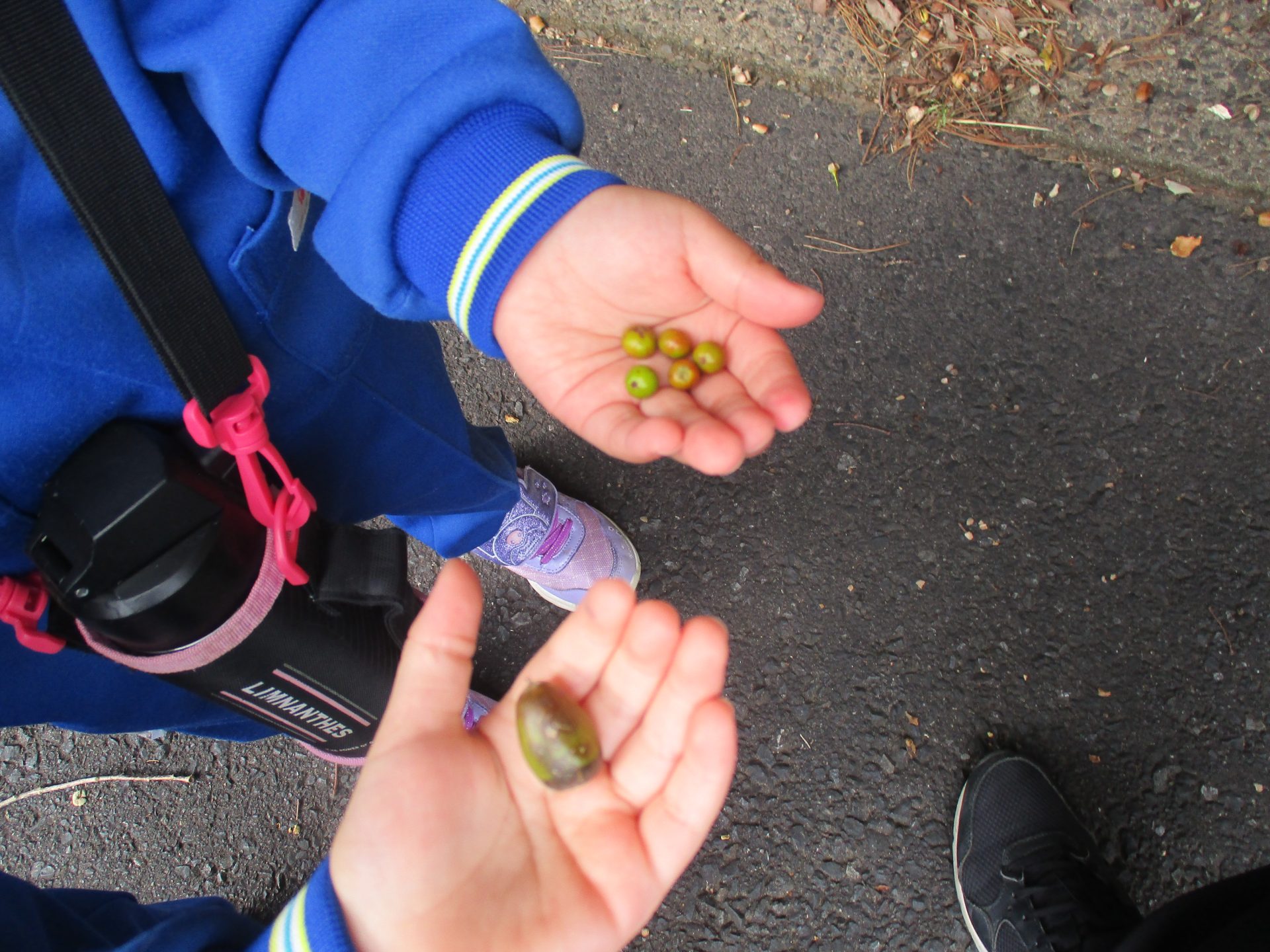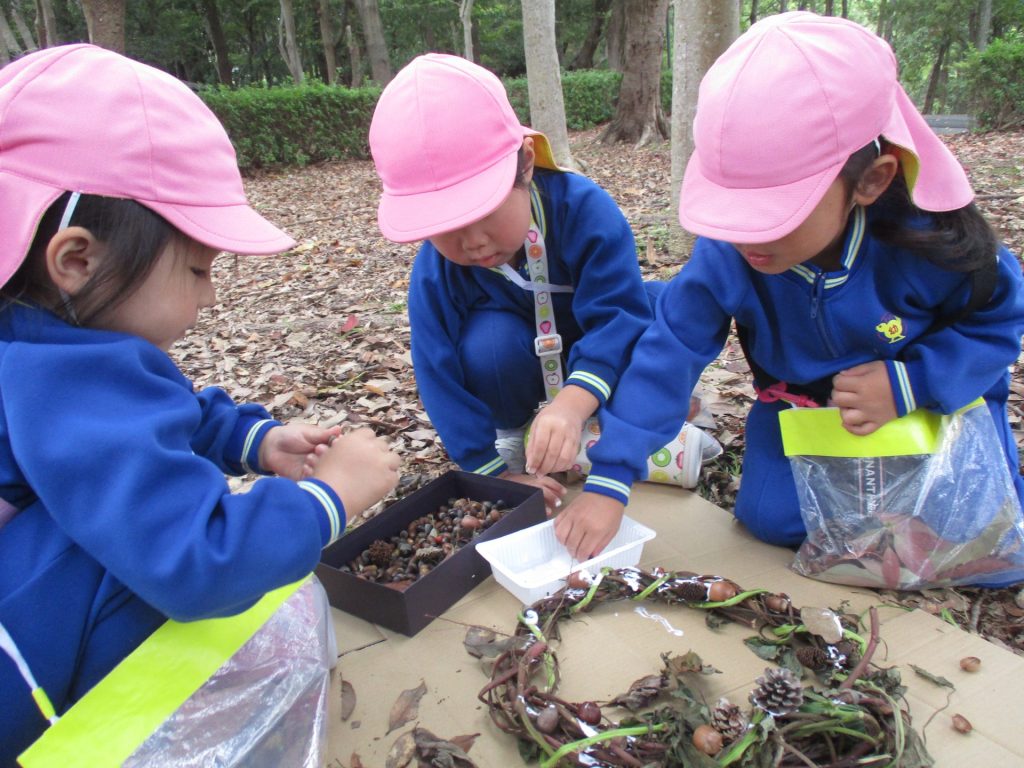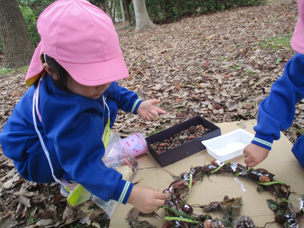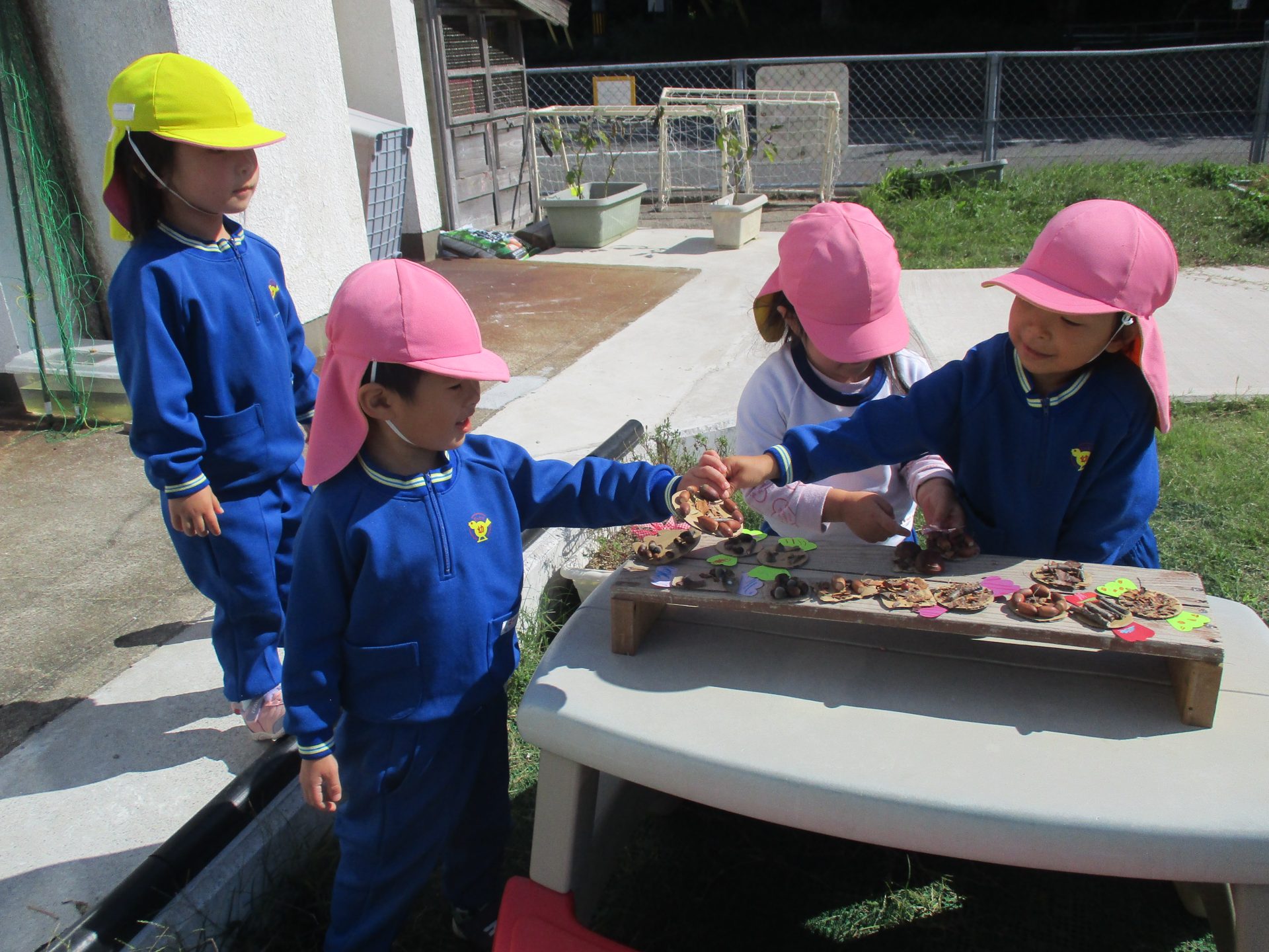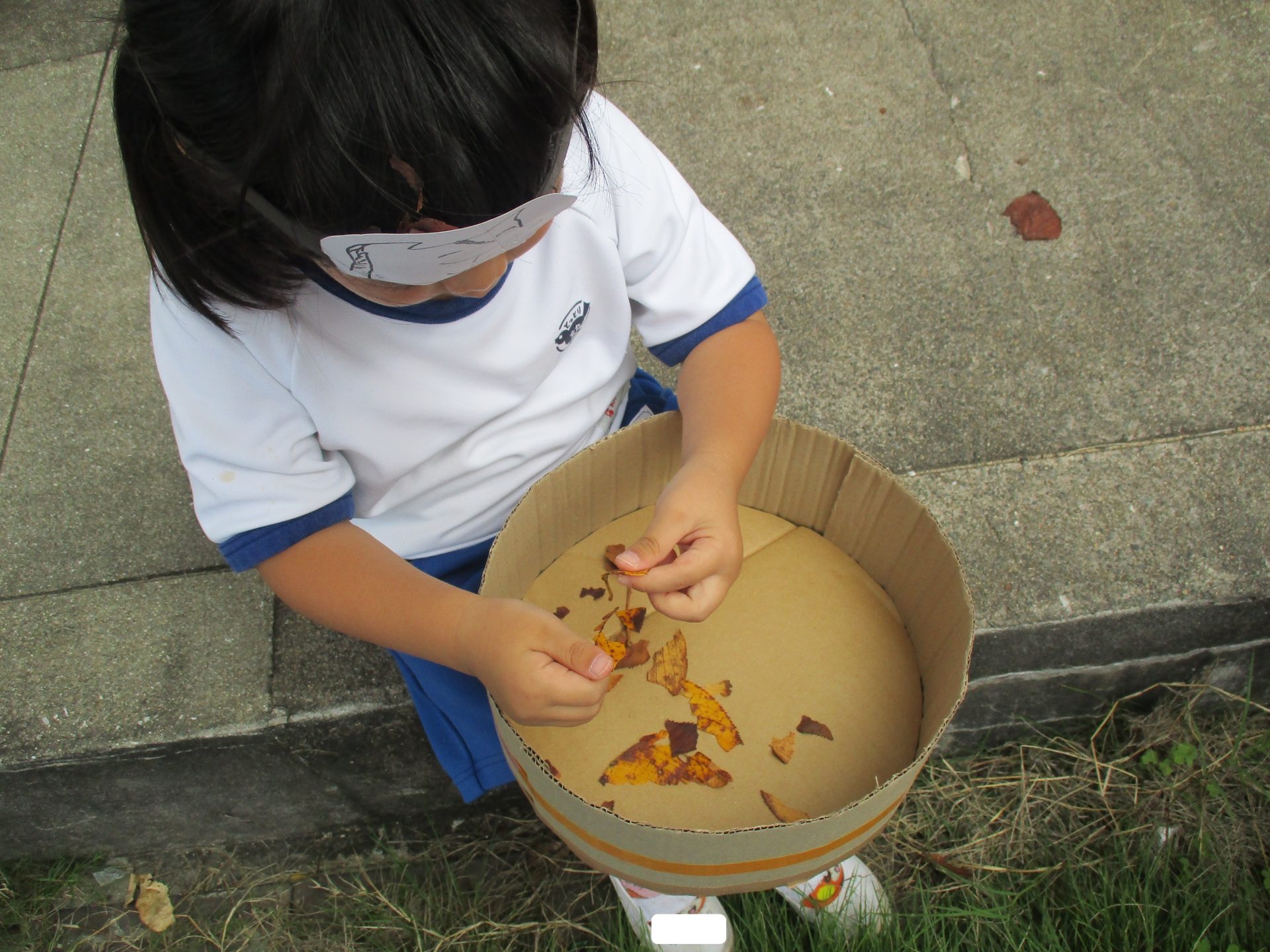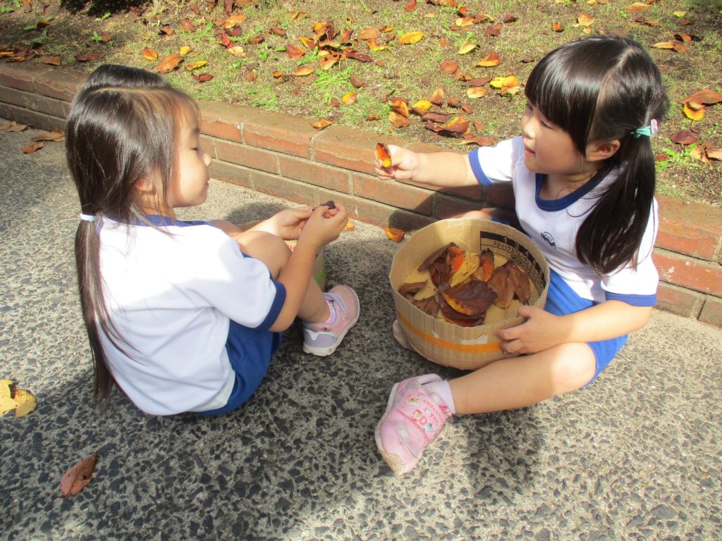 秋の葉や実を使って色々な遊びを楽しんでいます。