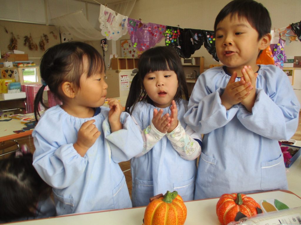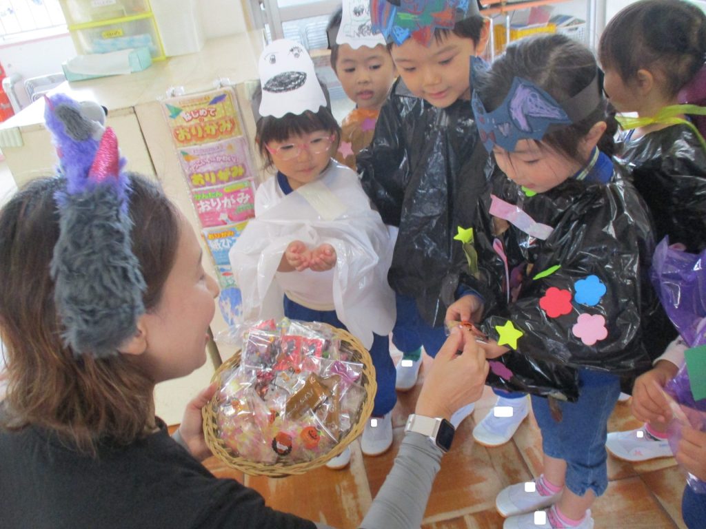 おばけにこうもり・魔女…みんなで仮装をしてハロウィンパーティーをしました!園内の先生を驚かして大満足!といわんばかりの可愛い子ども達でした。