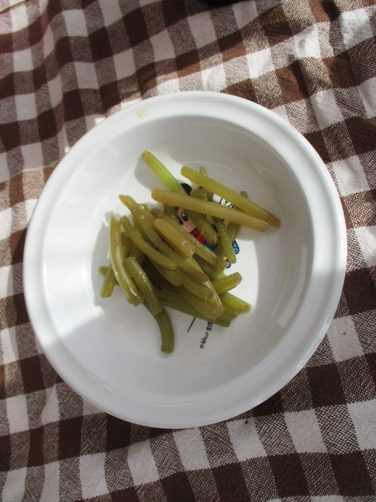 みんなで皮むき(筋取り)をとってお料理して、おいしくいただきました。「おいしい!」と大好評!おかわりがとまらないほどおいしく、ペロリとあっという間に完食♪