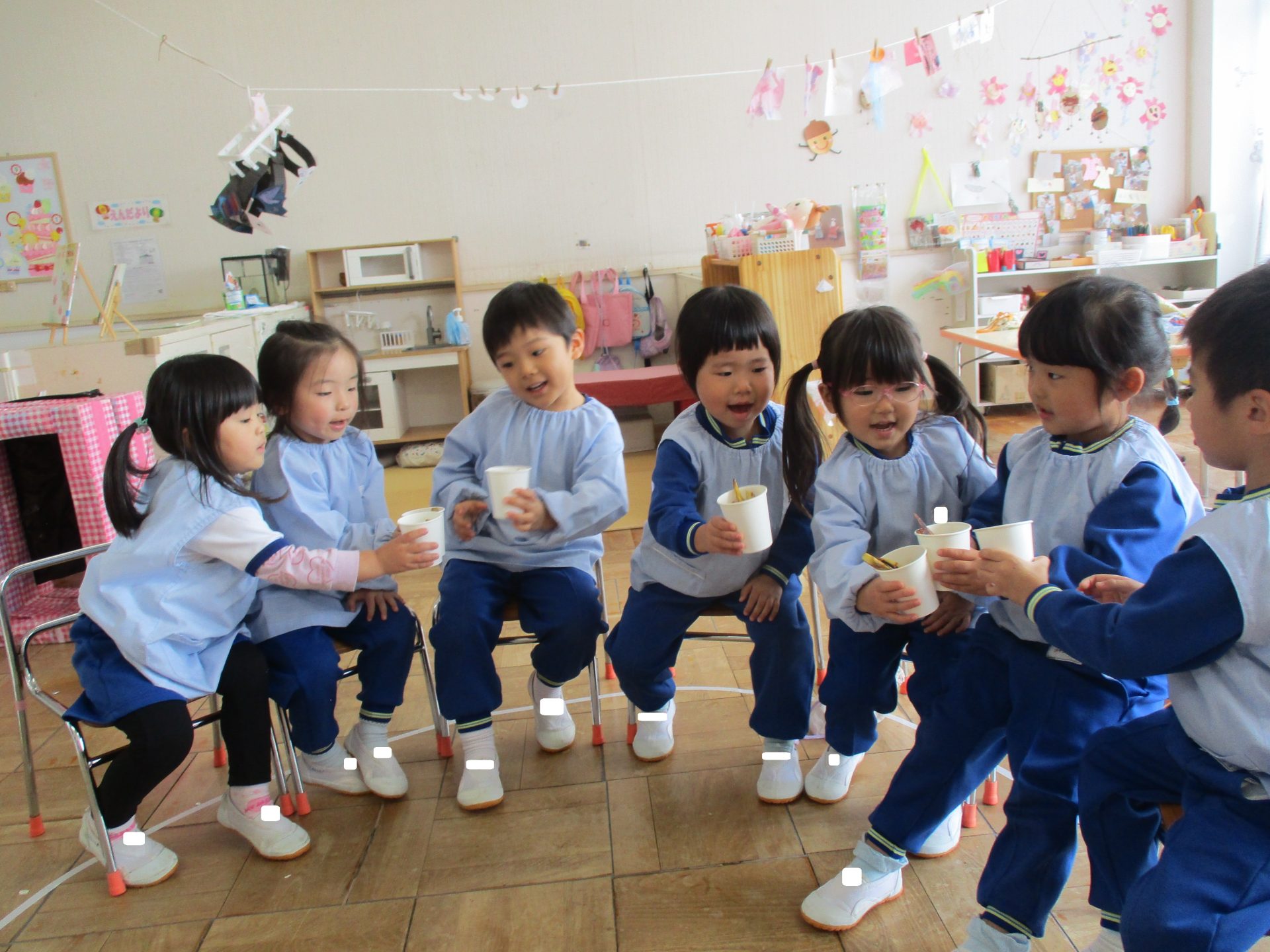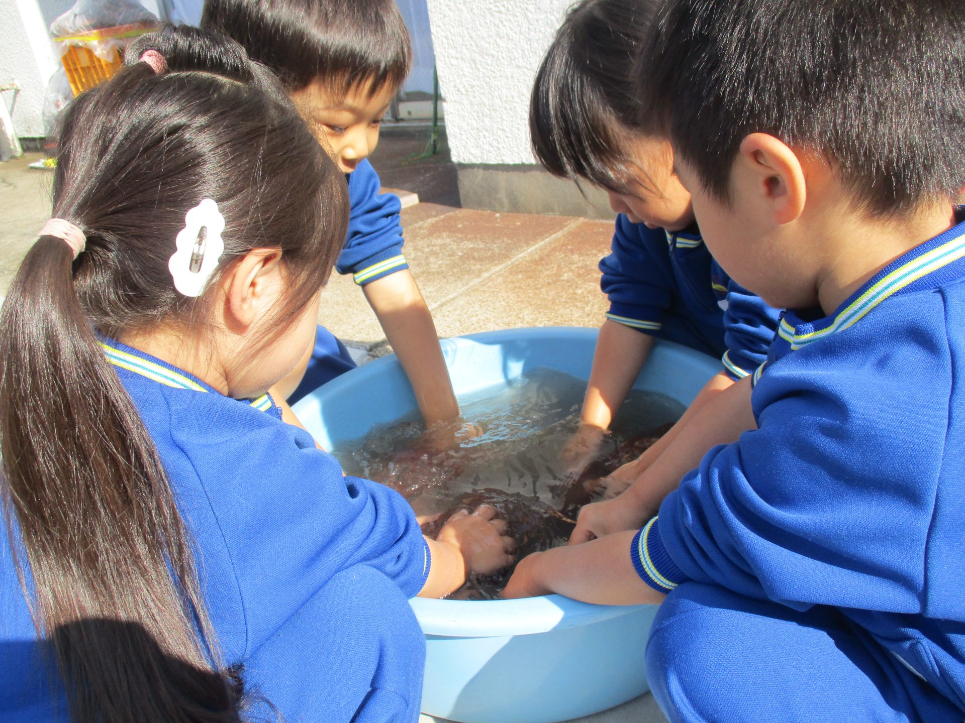 掘ったサツマイモを使って作ったいも汁!もも組の子ども達はさつまいも洗いのお手伝いをしてくれました。「お風呂ですよ」「気持ちいいって言ってるね」「お湯加減はいかがですか?」と大盛り上がりでした!いも汁おいしかったね♪