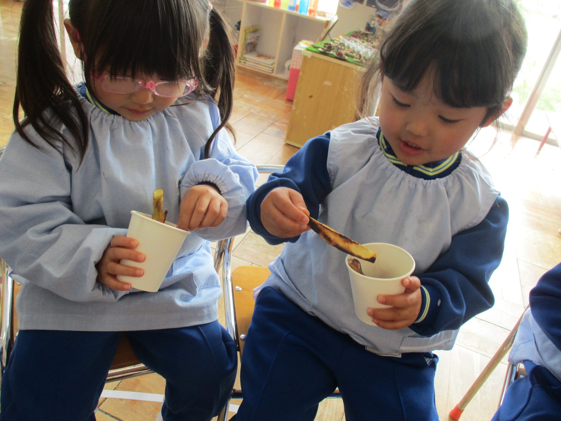 クラスでもさつまいもを使ったクッキングを楽しんでいます。まだまださつまいもパーティーは続きます☆