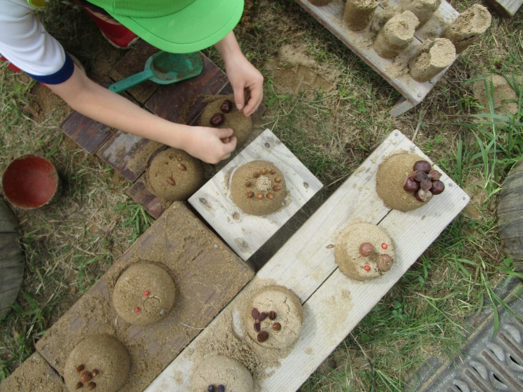 木の実も飾ってみようかな・・園にある木の実や畑で見つけたぶどうなど、たくさんのトッピング。