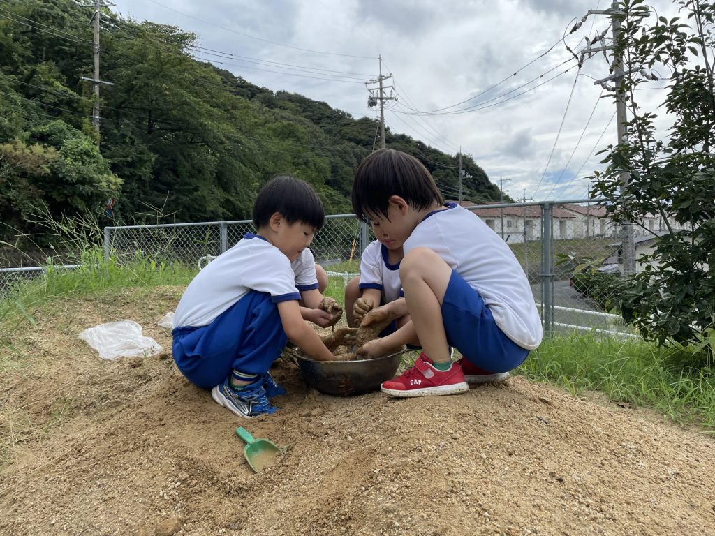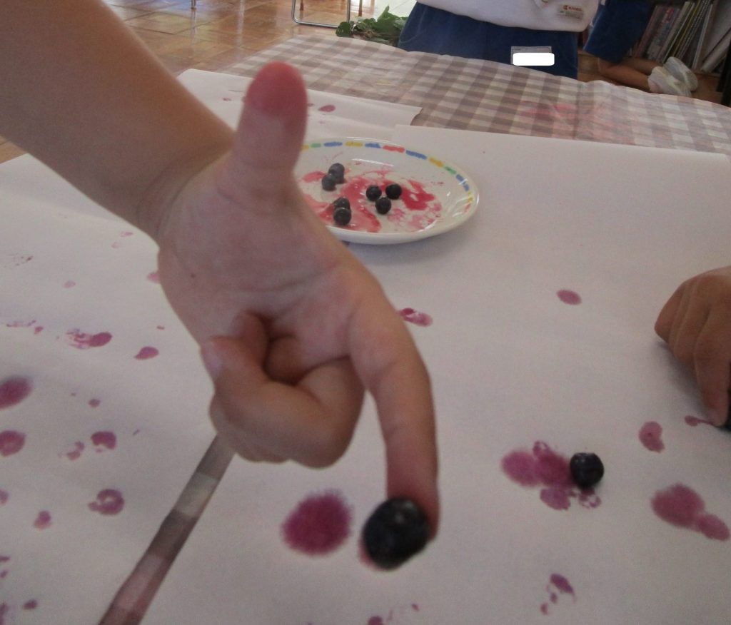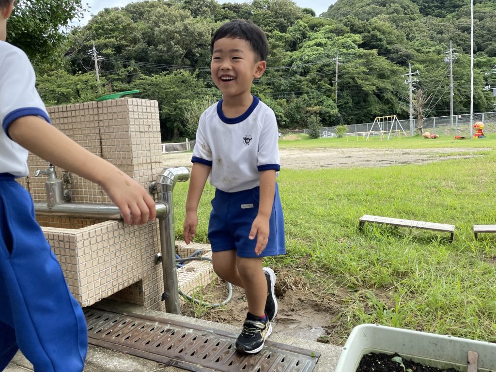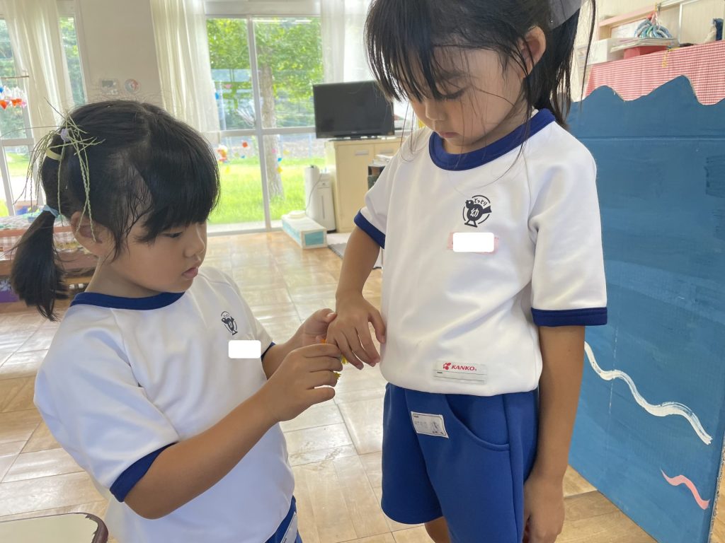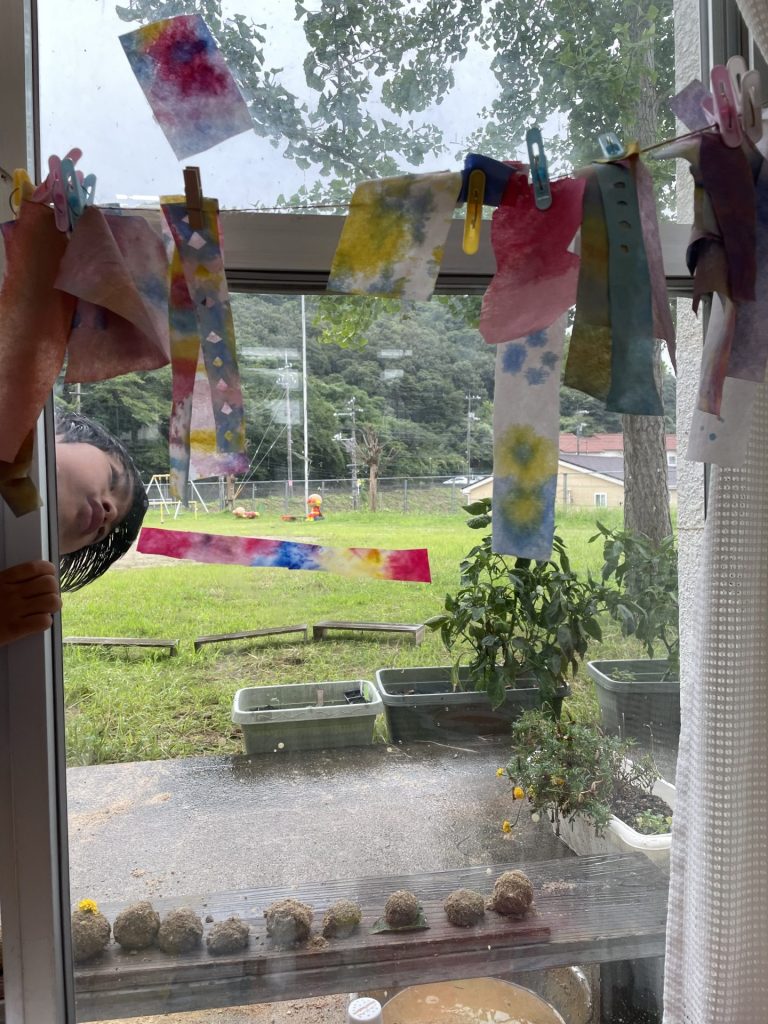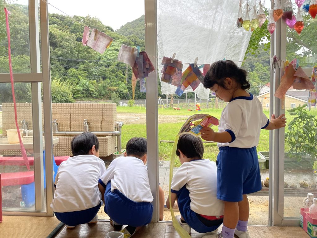 運動会の親子競技で色水あそびを楽しんだあと・・またまた色水を楽しむ子ども達。1学期から長い期間楽しんでいる『いろ』・・・混ぜたりしながら色味の違いを楽しんでいました。