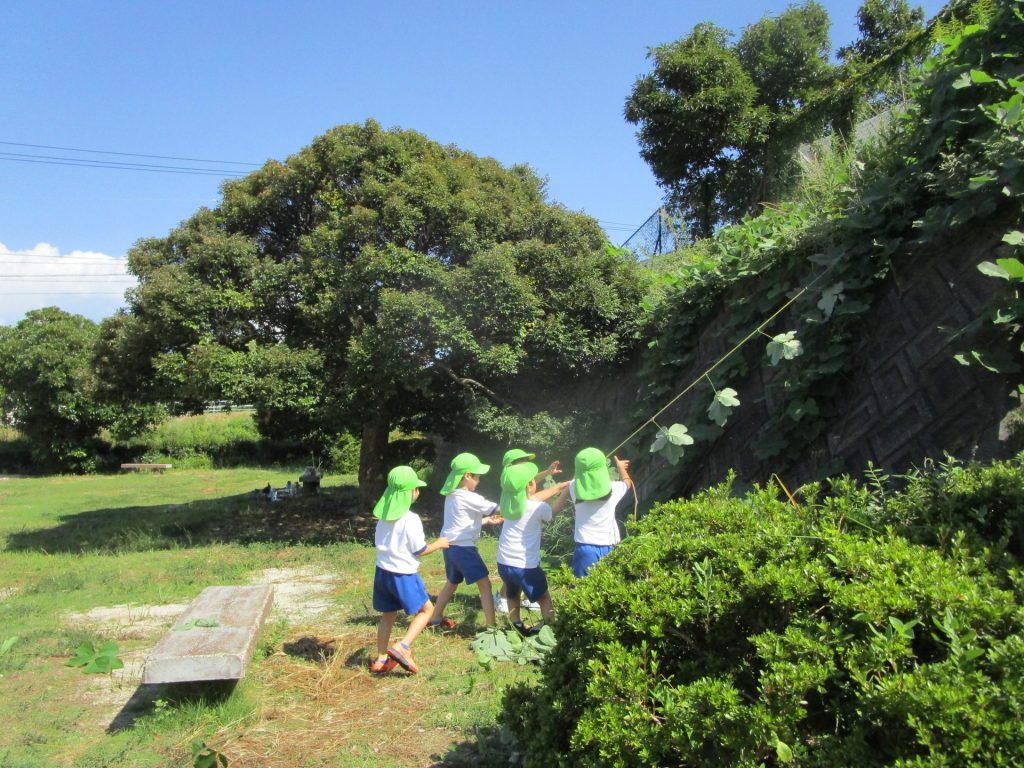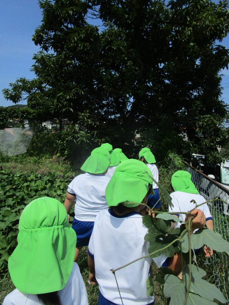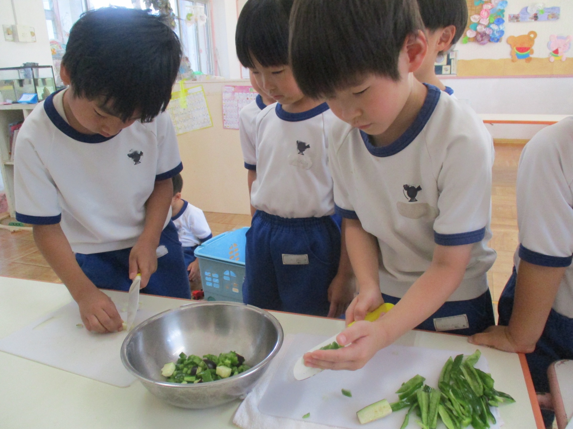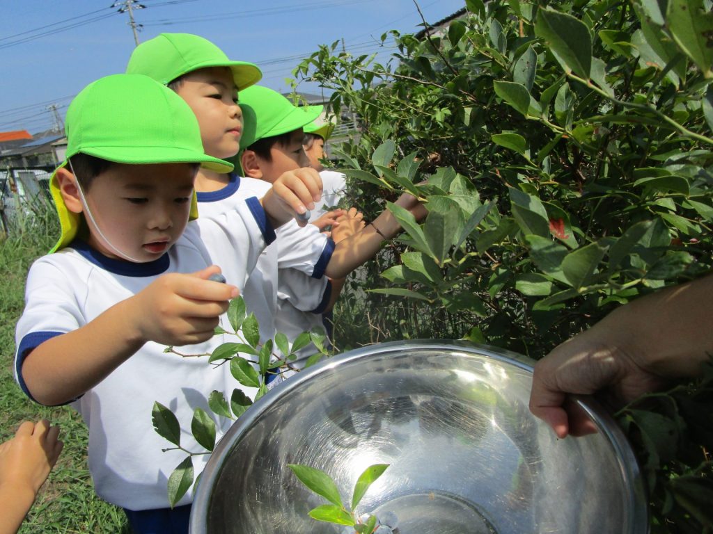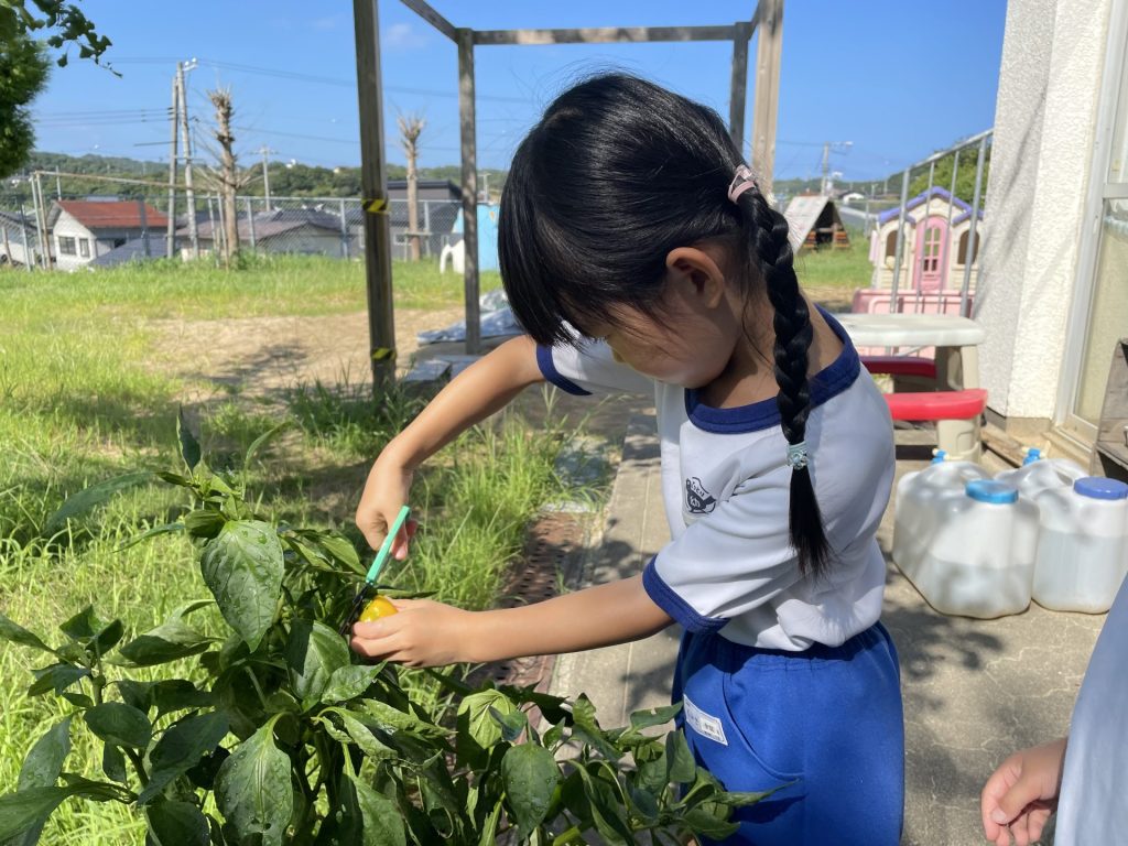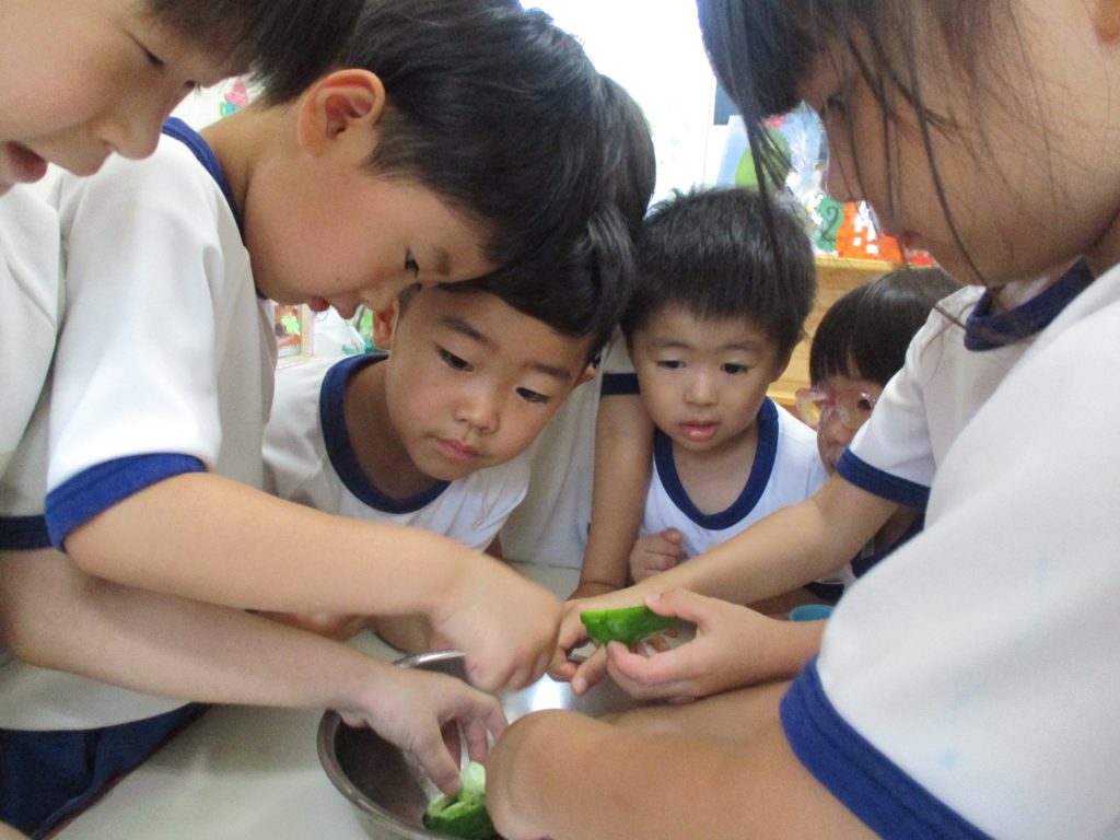 運動会の親子競技で色水あそびを楽しんだあと・・またまた色水を楽しむ子ども達。1学期から長い期間楽しんでいる『いろ』・・・混ぜたりしながら色味の違いを楽しんでいました。