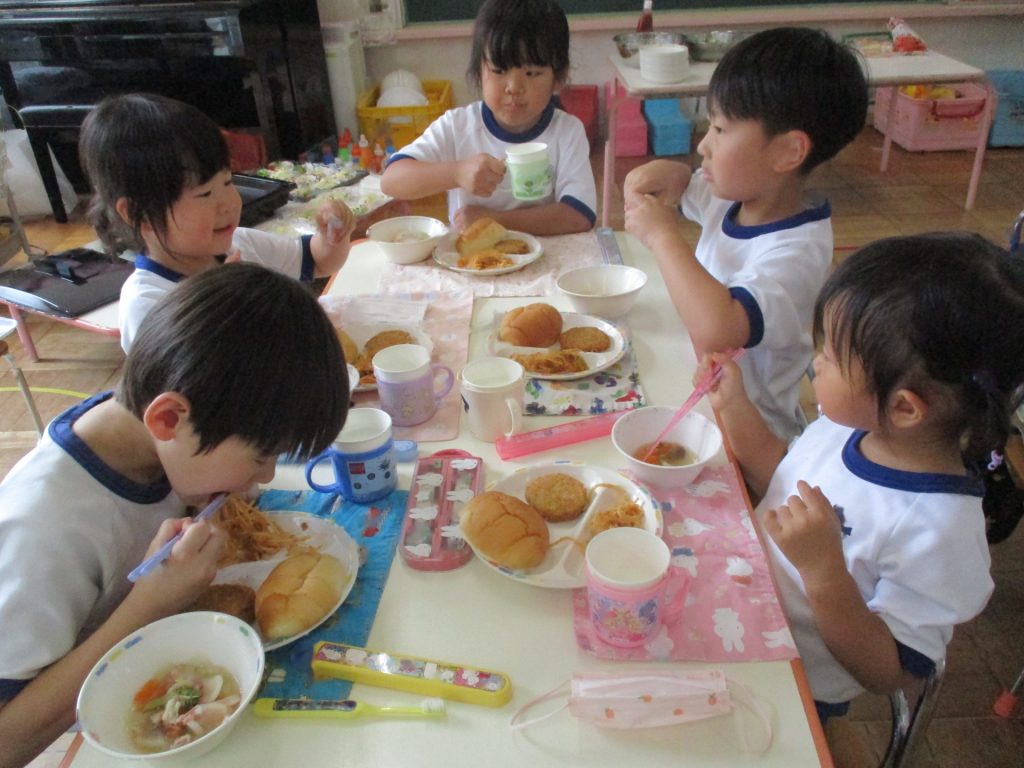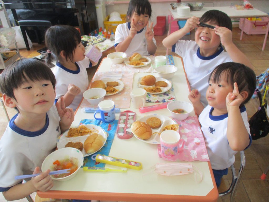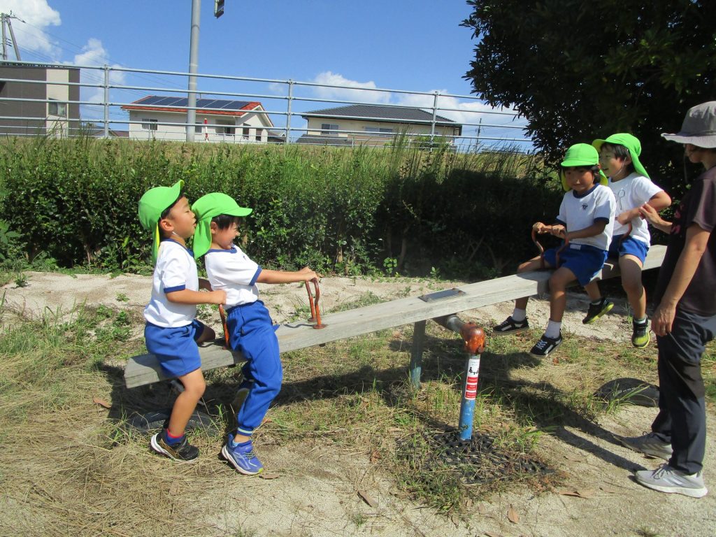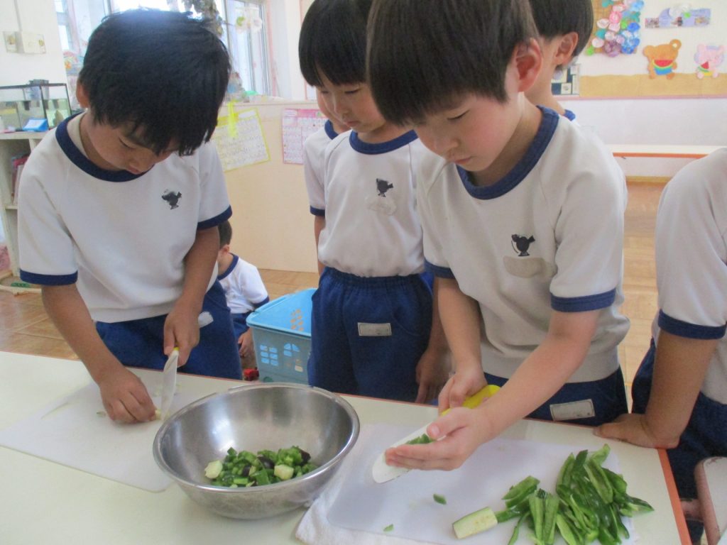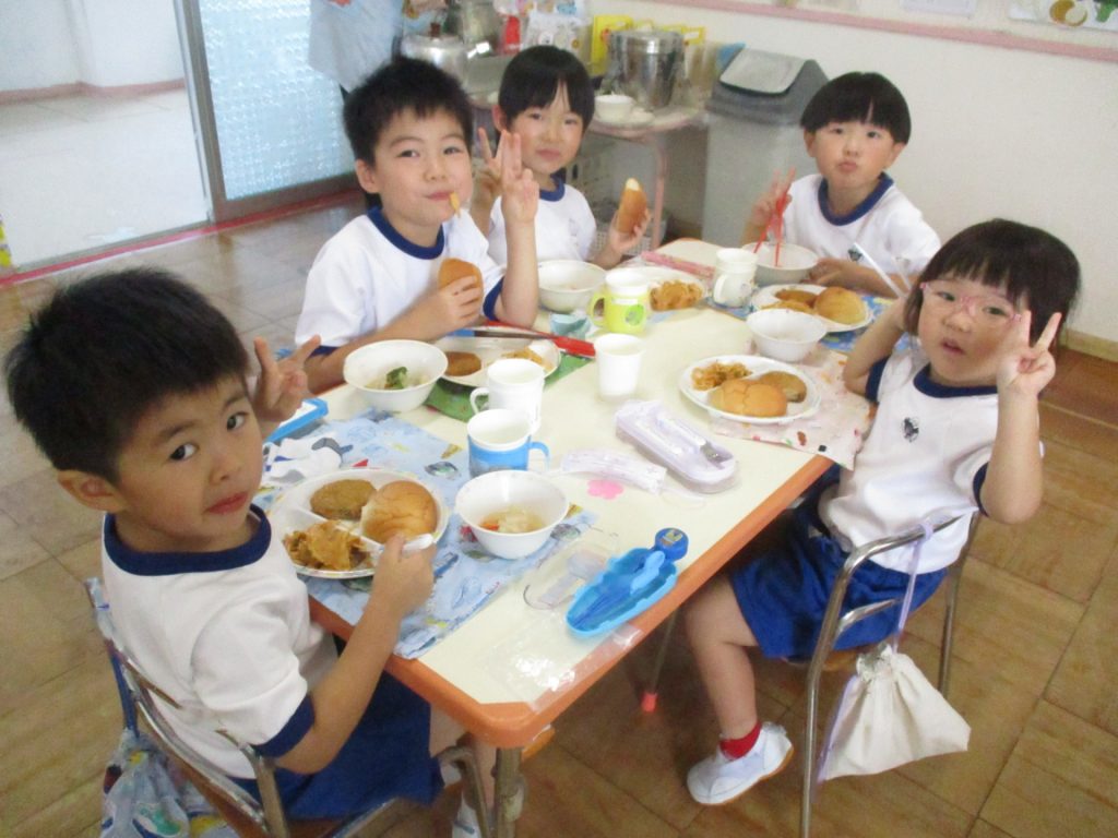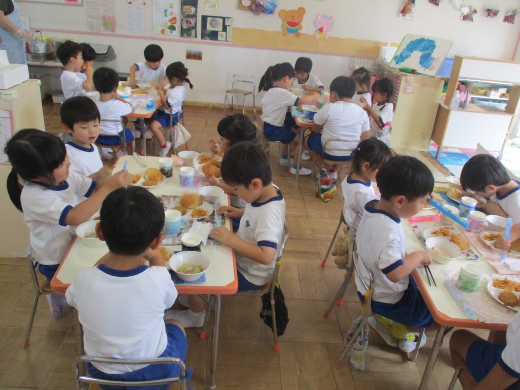運動会の親子競技で色水あそびを楽しんだあと・・またまた色水を楽しむ子ども達。1学期から長い期間楽しんでいる『いろ』・・・混ぜたりしながら色味の違いを楽しんでいました。