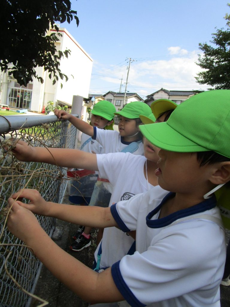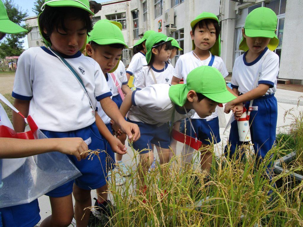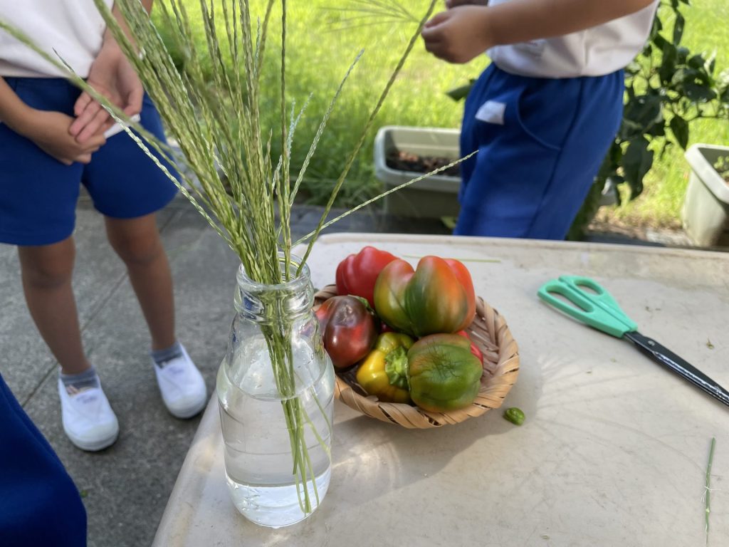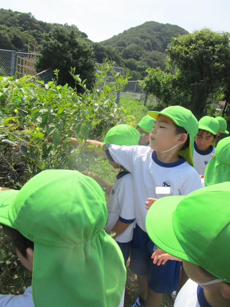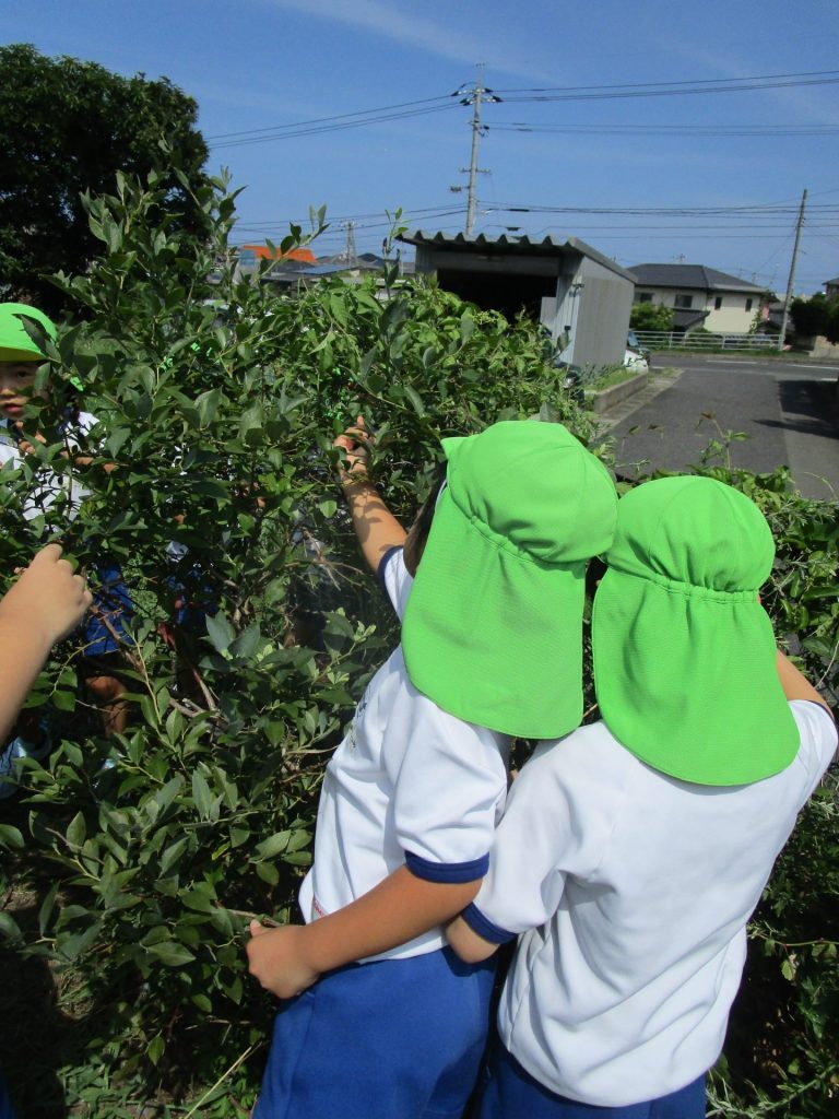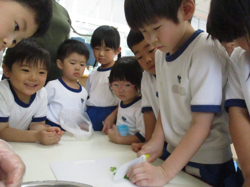 この日の朝の「おはよう」の時間に、できた色水を紹介してくれました。のりのりです。