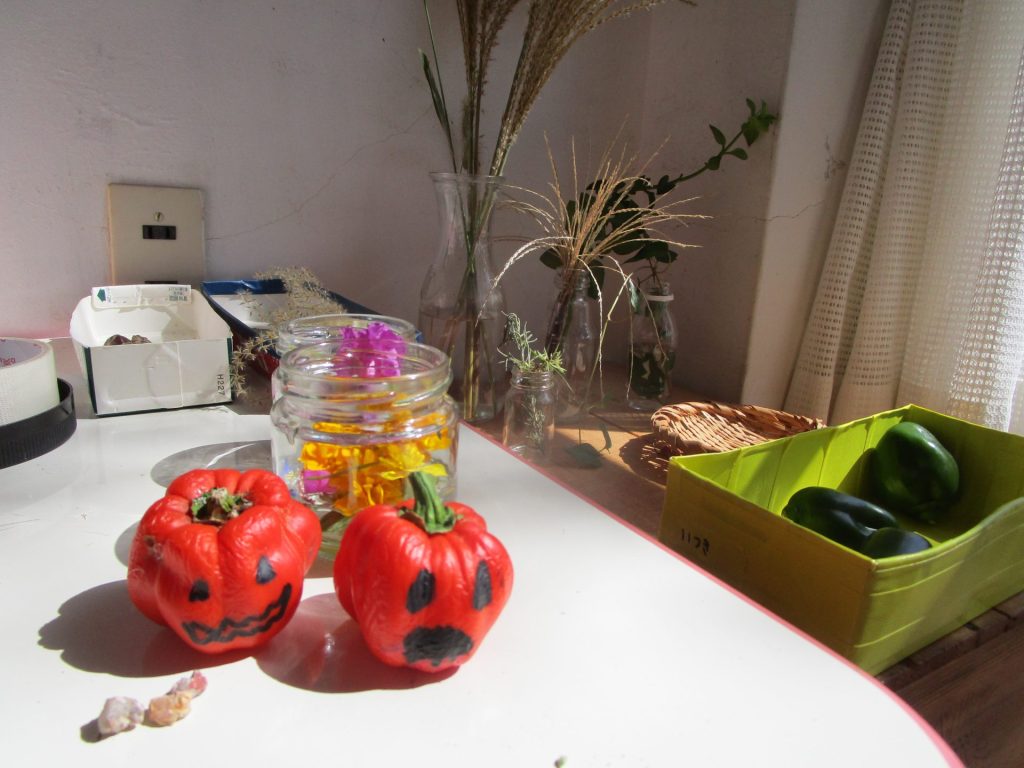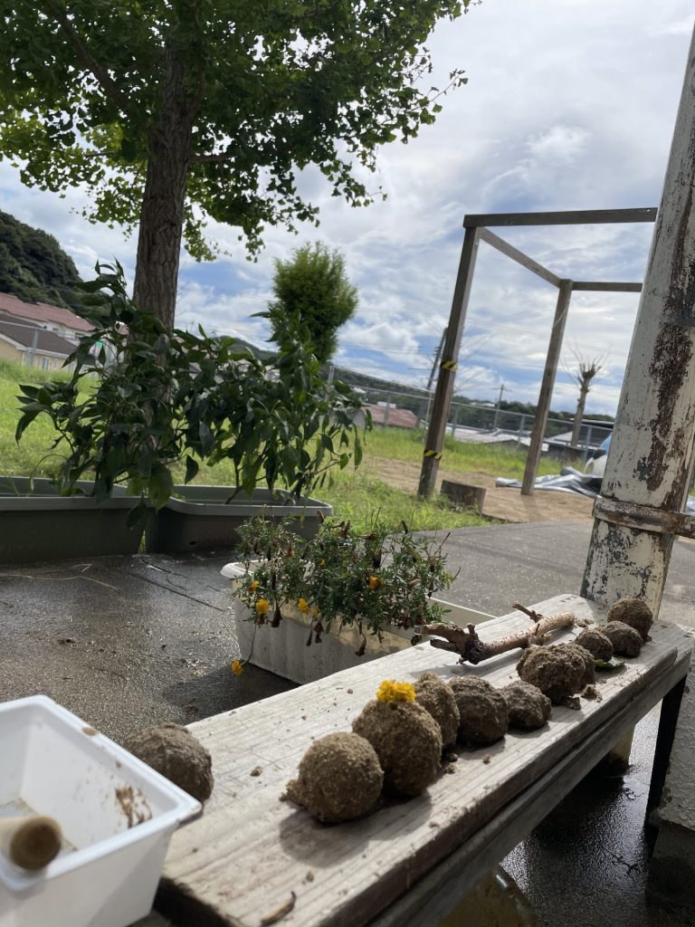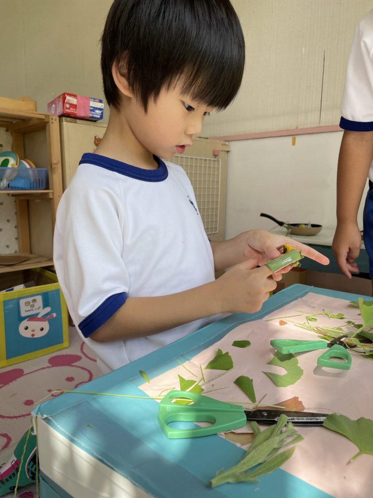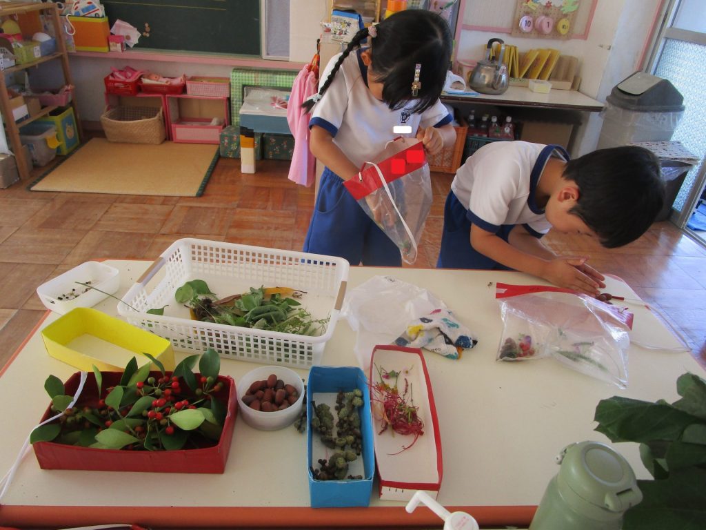 木の実も飾ってみようかな・・園にある木の実や畑で見つけたぶどうなど、たくさんのトッピング。