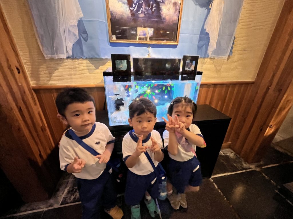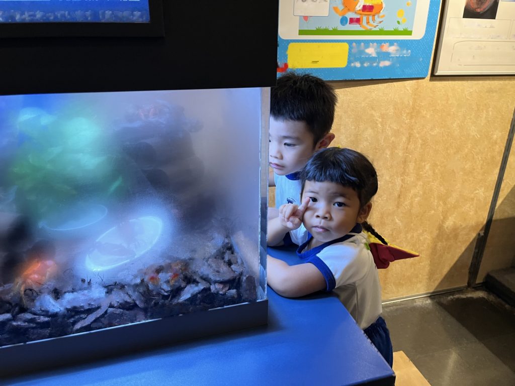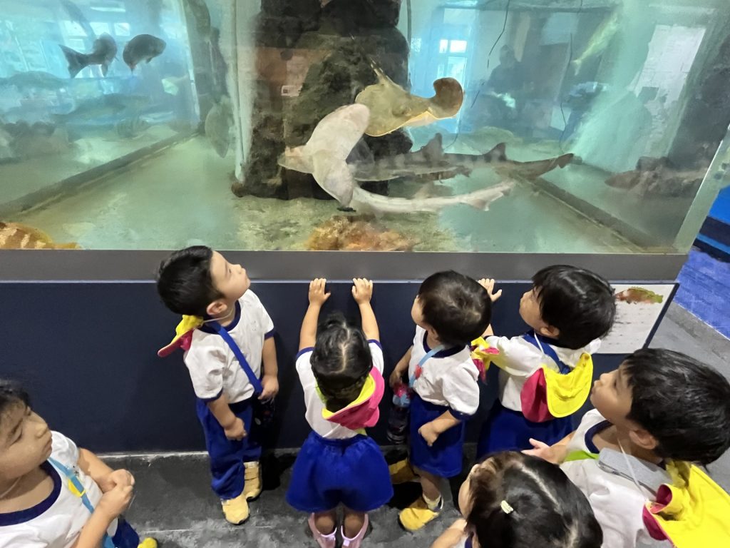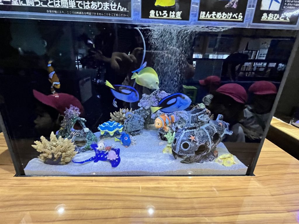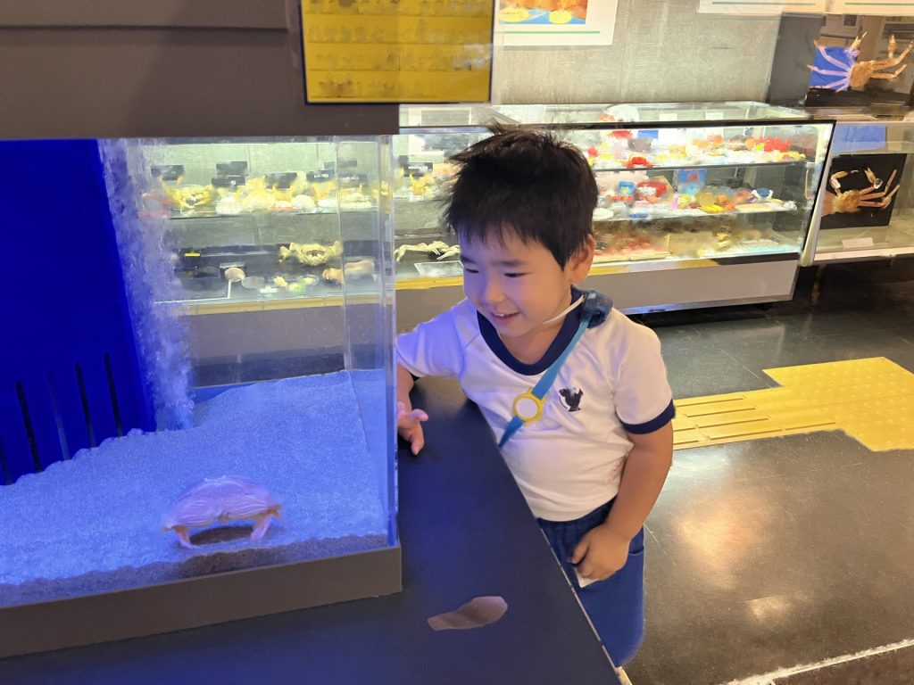 着いてから中の散策を楽しんだり、みんなで写真を撮ったりと館内で自分の見たい魚を見ることを楽しんだたんぽぽ組さん!サメがいることや大きなカニがいることに驚き、一歩後ろに下がって魚を見る微笑ましい子ども達の姿もありました♡