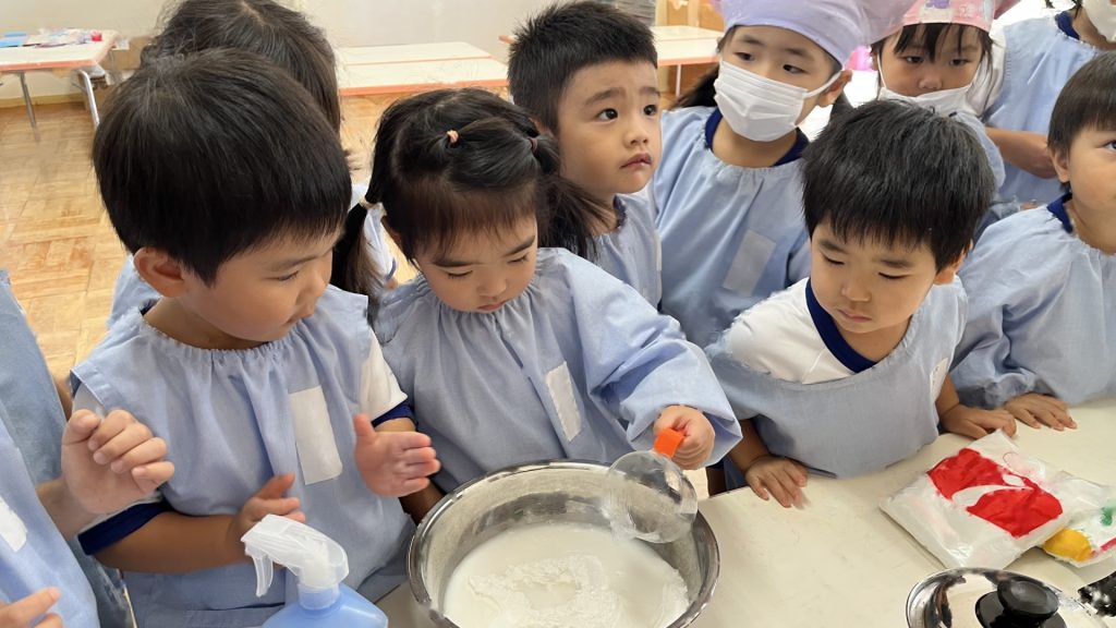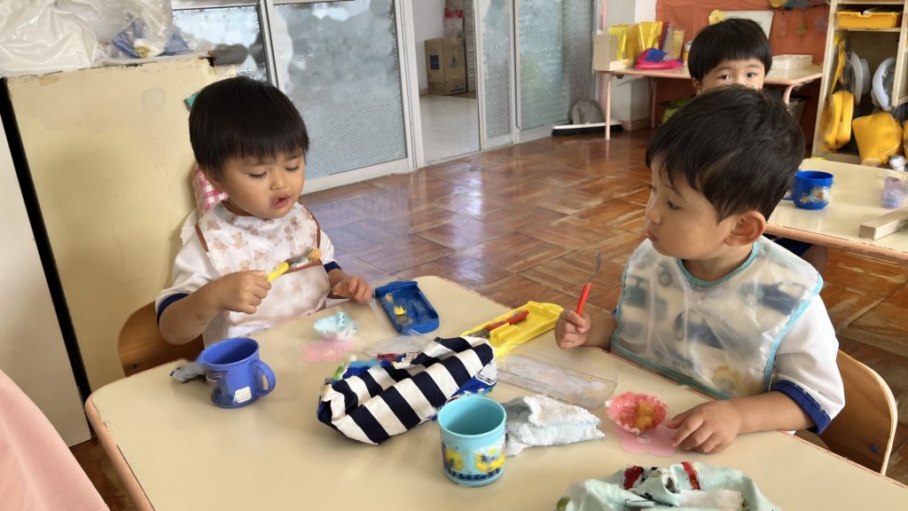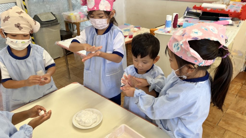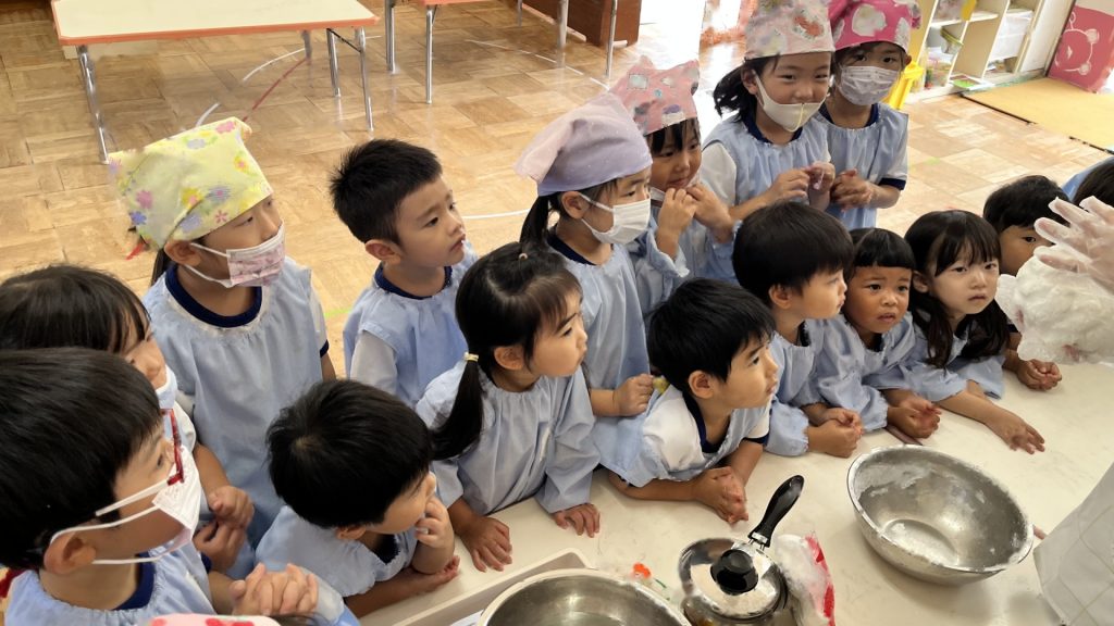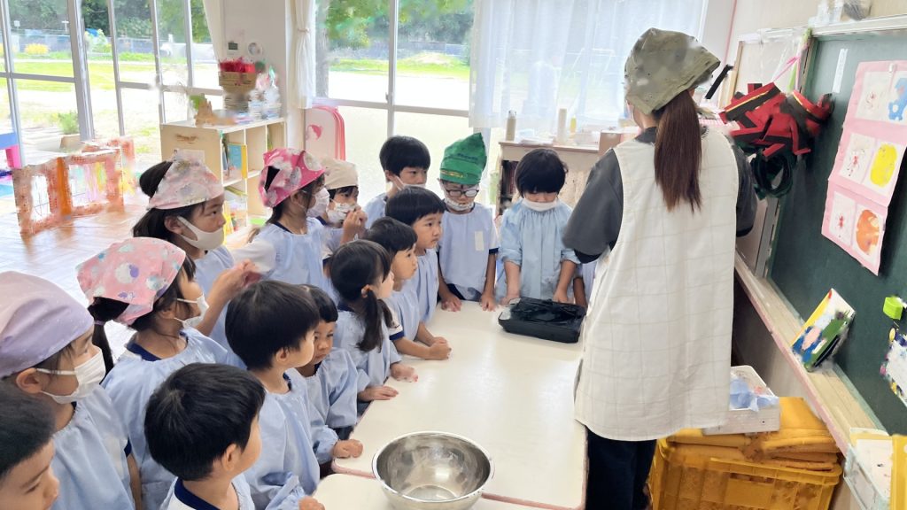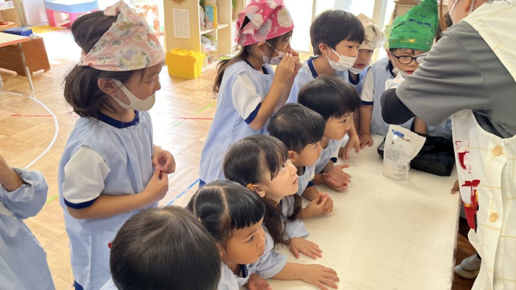 当日、天候は朝から雨で、かにっこ館に行くことを伝えると、「やった~!!」「魚大好き!」「サメもいるよ!」と嬉しさを言葉にして表現することを楽しむ子ども達でした!!