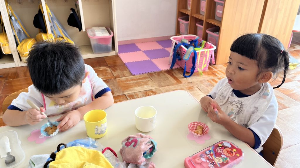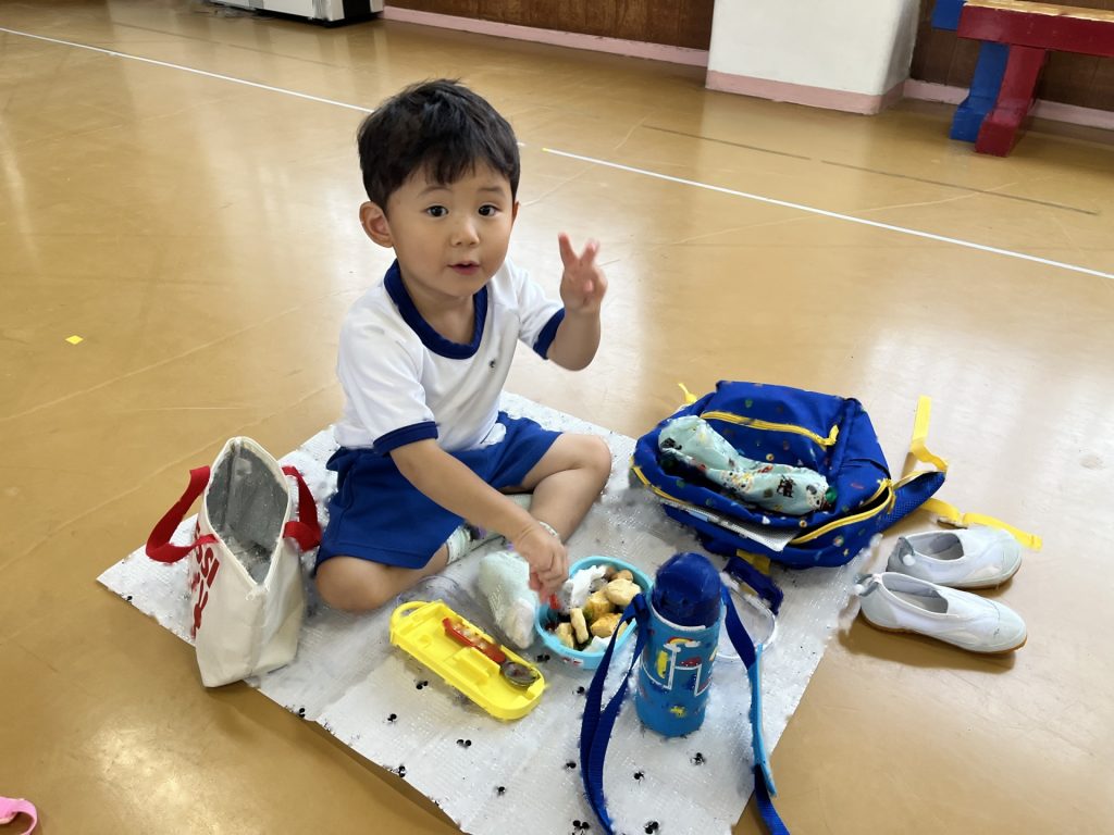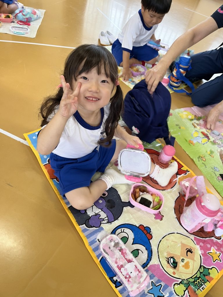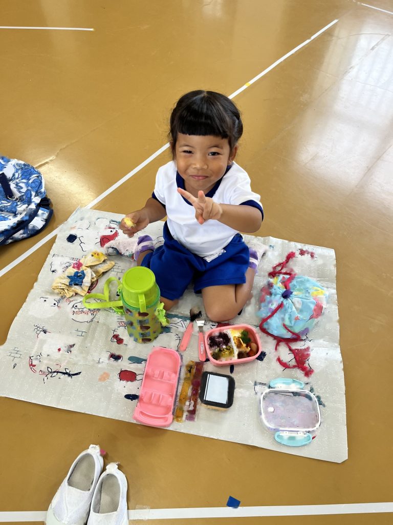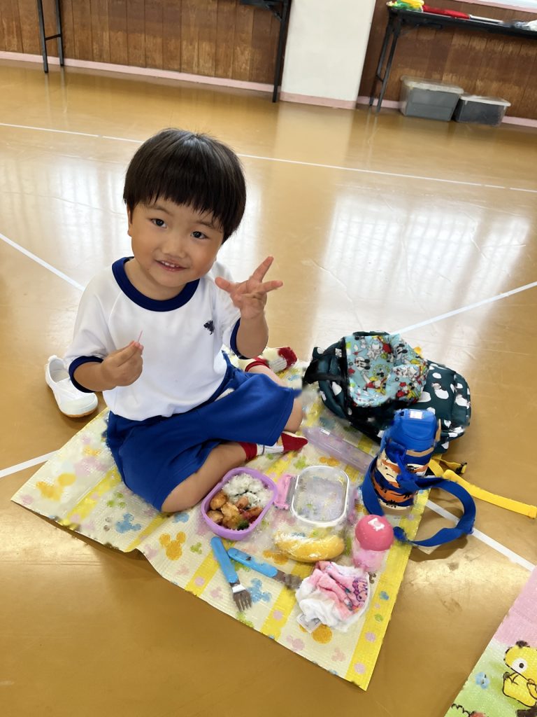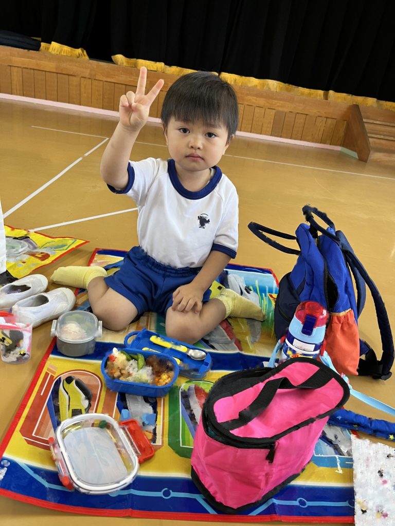 幼稚園に帰って楽しみにしていたお弁当タイム♪「卵が入ってる!」「ウインナー大好き!」と嬉しそうに見せてくれてました!「美味しいね~」とみんなで共有しながら楽しんで食べることができました☆素敵な時間になりました!!お弁当の準備、ありがとうございました。