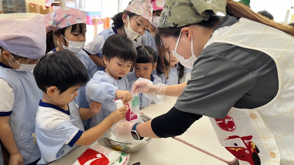 10月8日は、みんなが楽しみにしていた園外保育でした~!!前日から晴天時・雨天時に行く場所について確認したことで、「雨でも晴れでも楽しそう!」「公園やかにっこ館楽しみ~!!」「魚がいるかな・・・!」「大きなカニも見たい!」など楽しみにしている姿もたくさんありました。