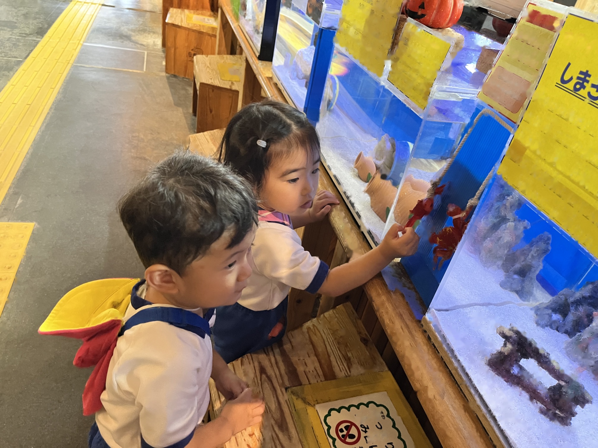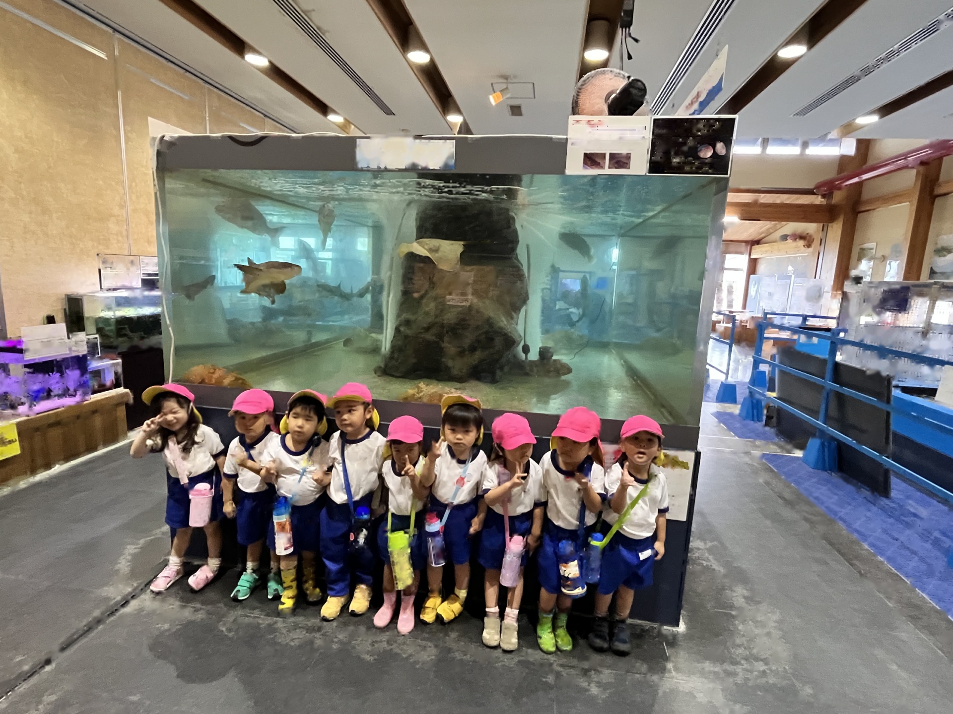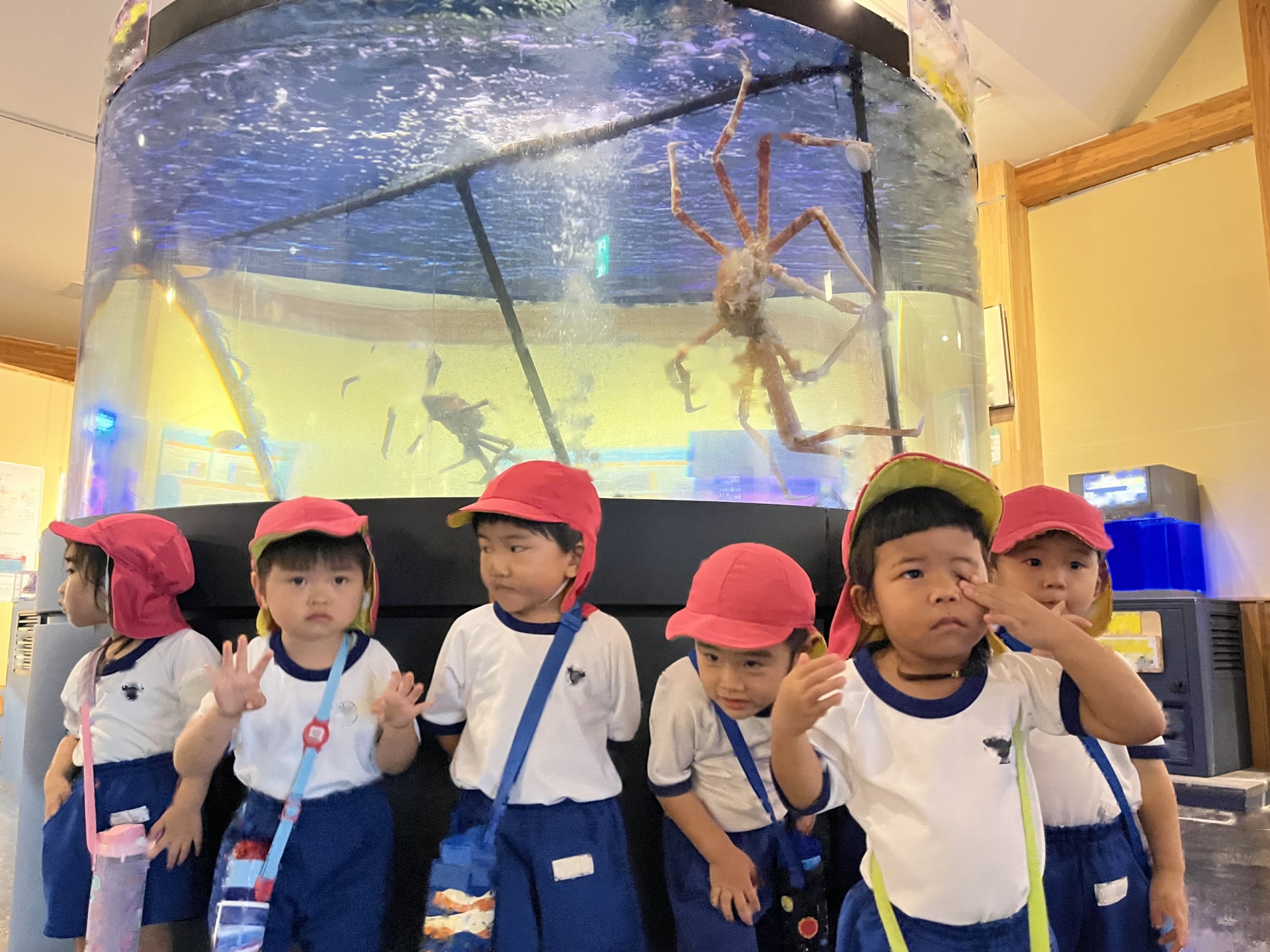 着いてから中の散策を楽しんだり、みんなで写真を撮ったりと館内で自分の見たい魚を見ることを楽しんだたんぽぽ組さん!サメがいることや大きなカニがいることに驚き、一歩後ろに下がって魚を見る微笑ましい子ども達の姿もありました♡