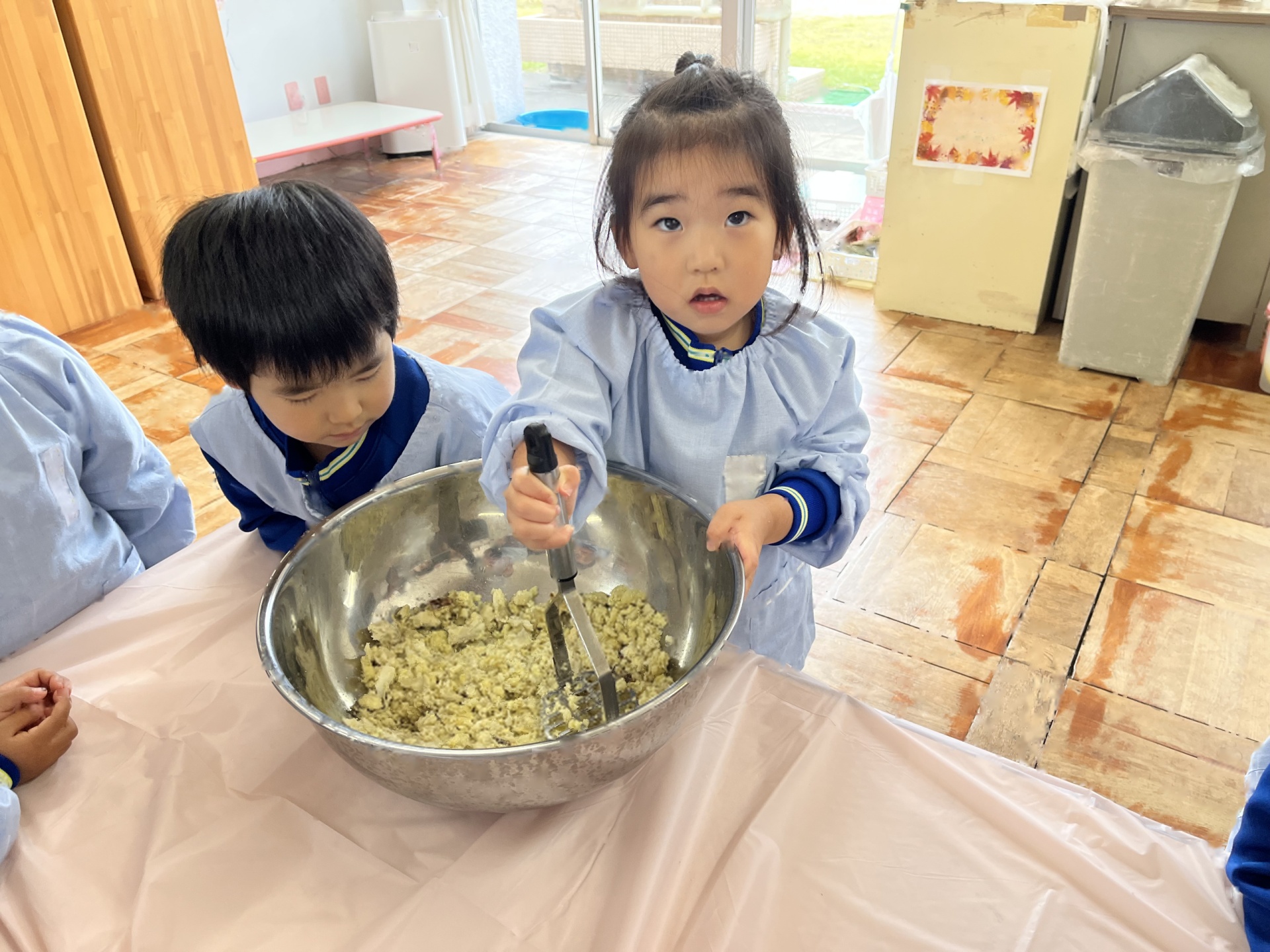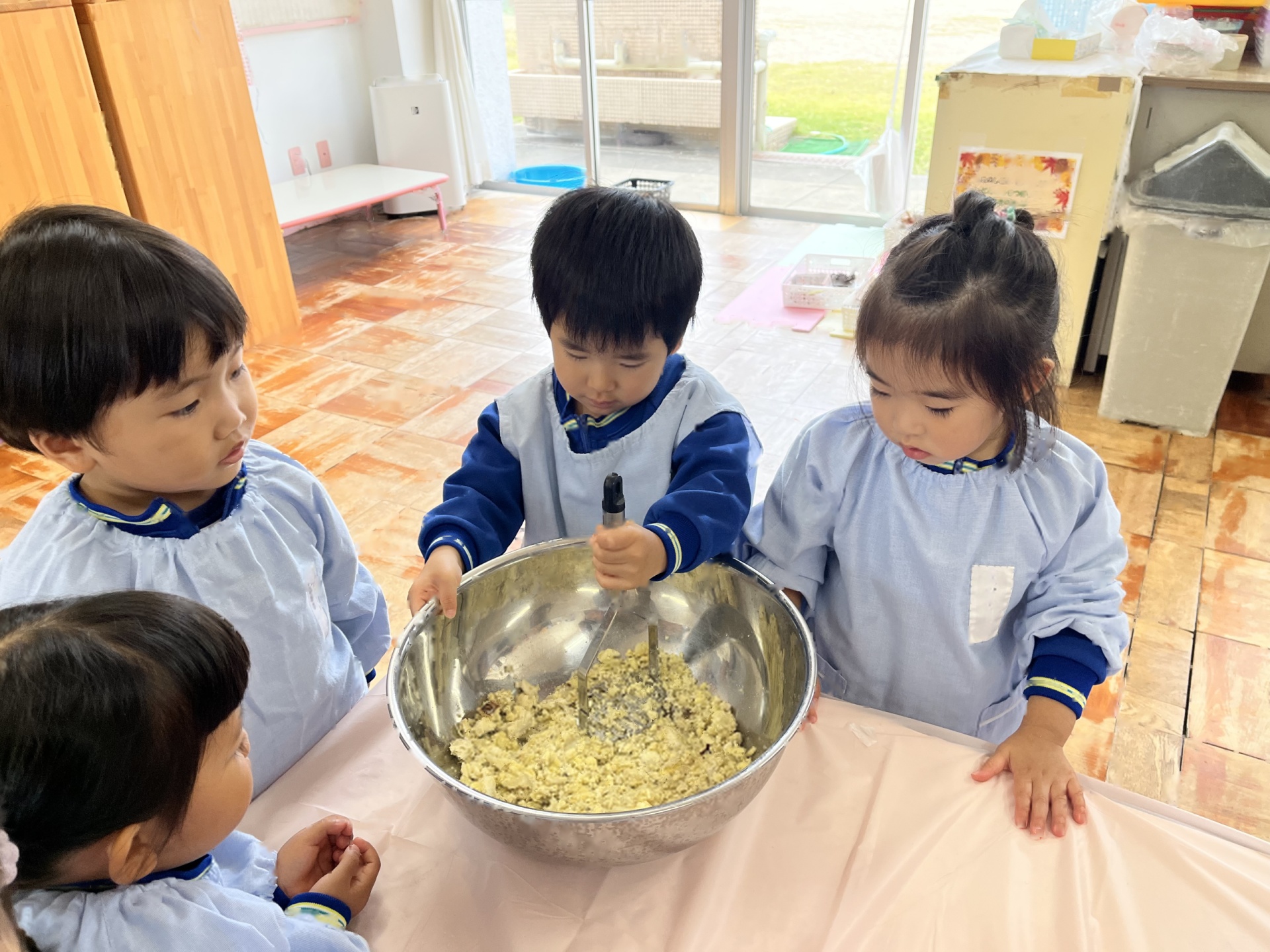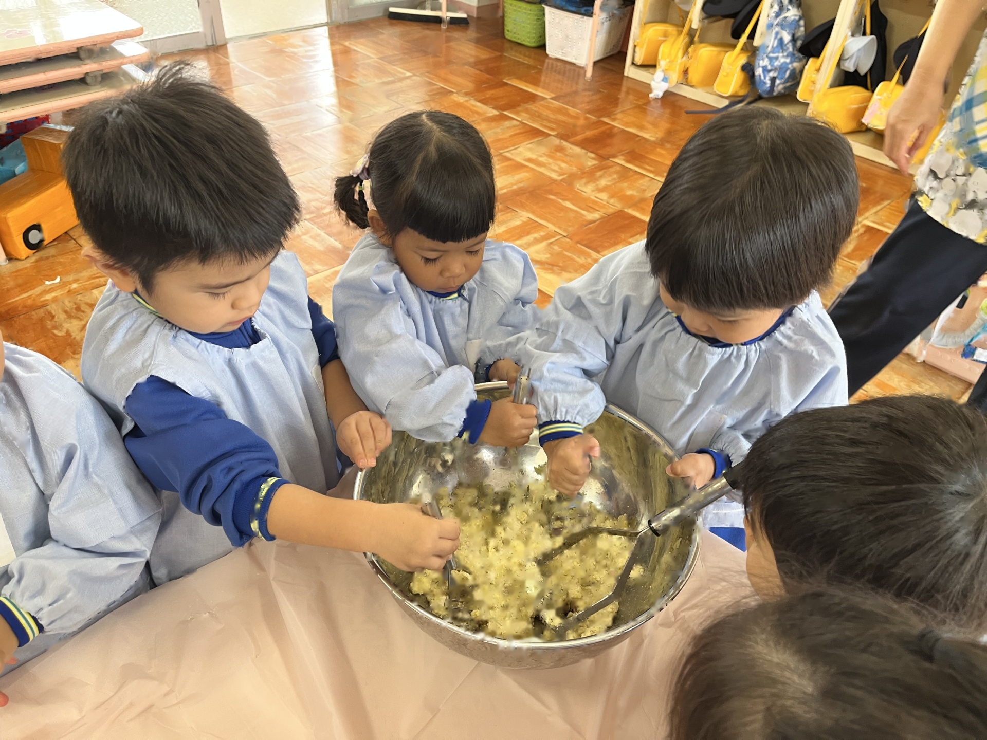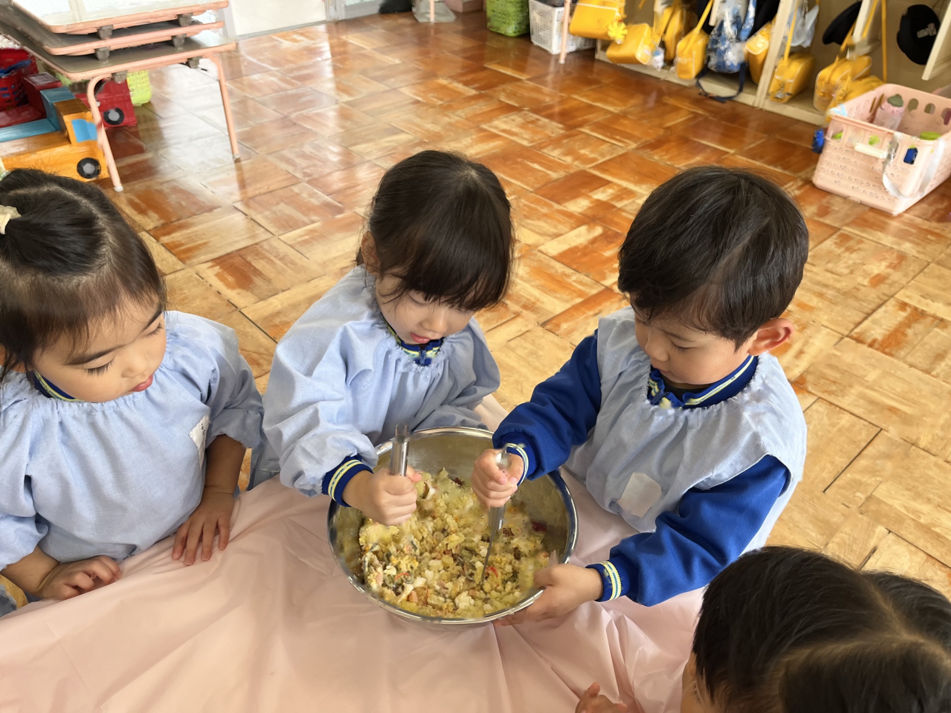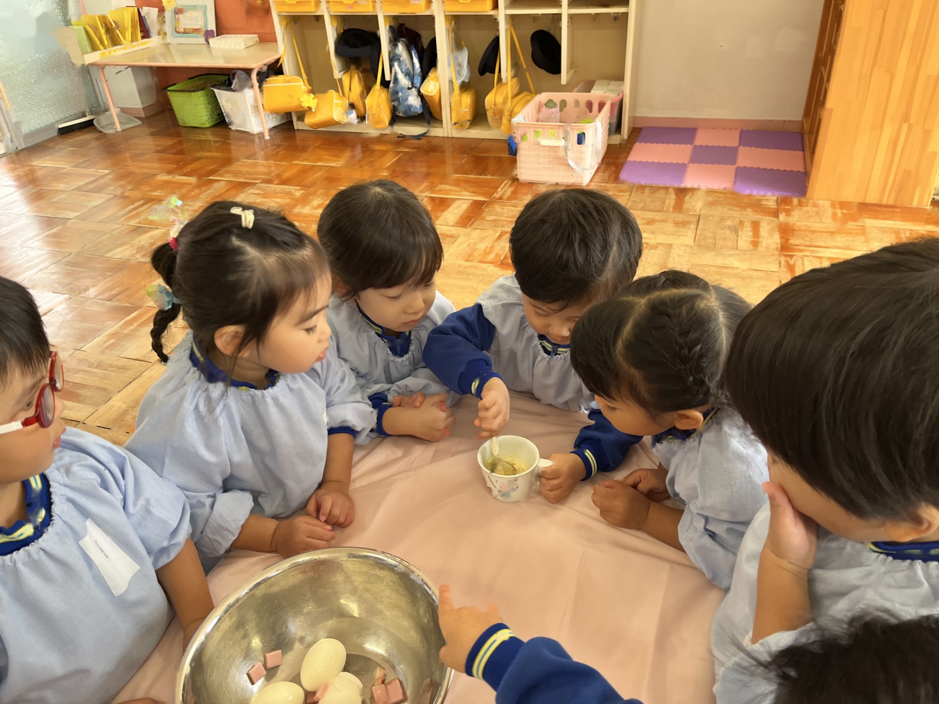 2回目のクッキングは、お芋のサラダを作りました!「みんなで作ると美味しい!」と笑顔いっぱいのたんぽぽ組さんでした!コンソメとマヨネーズを混ぜてソースを作ったり、芋と卵を混ぜたり、完成し、みんなでおいしくいただきました!!!