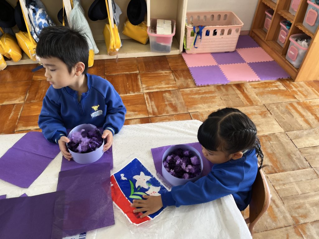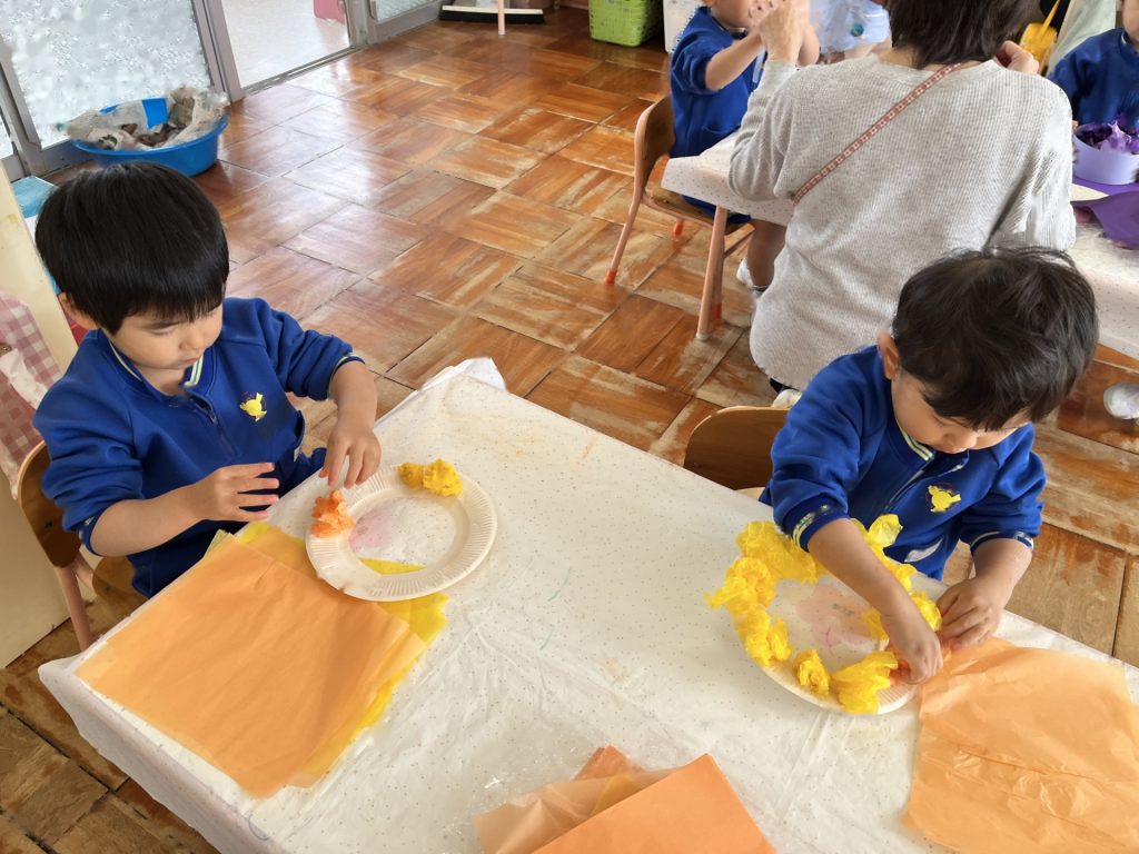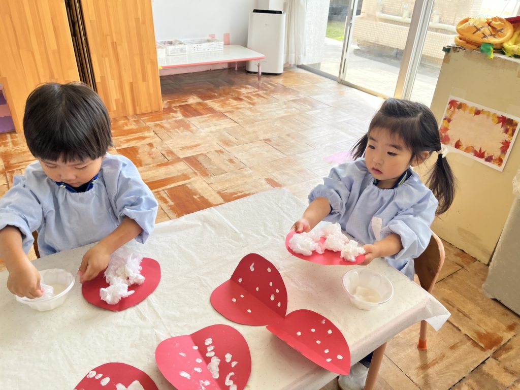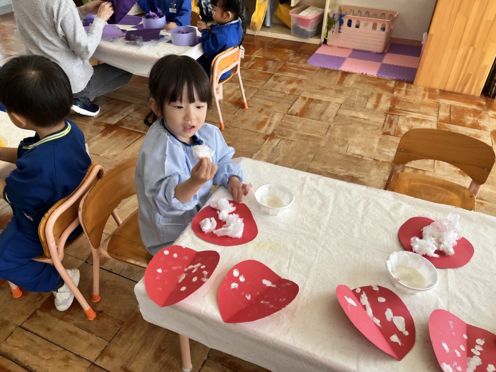 さらに小さく丸める所をばら組のお友達と一緒に楽しんだたんぽぽ組さん。丸めることが難しい姿もありましたが、「手伝ってあげる!」とばら組のお兄さん・お姉さんに優しく手伝ってもらったり、「こうだよ!」「手のひらでクルクルってするんだよ!」と優しく教えてもらったり、一緒に作ることができて笑顔いっぱいの子ども達でした♪!!異年齢での交流もクッキングを通してしっかりとでき、大満足のたんぽぽ組さんでした!!!