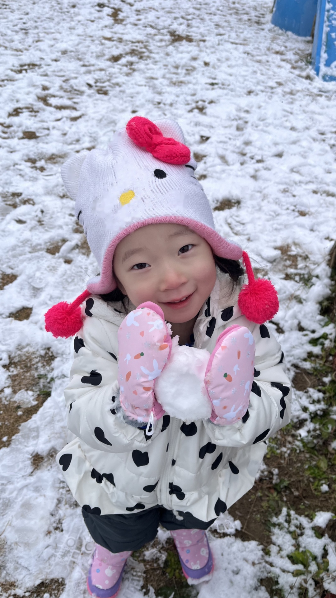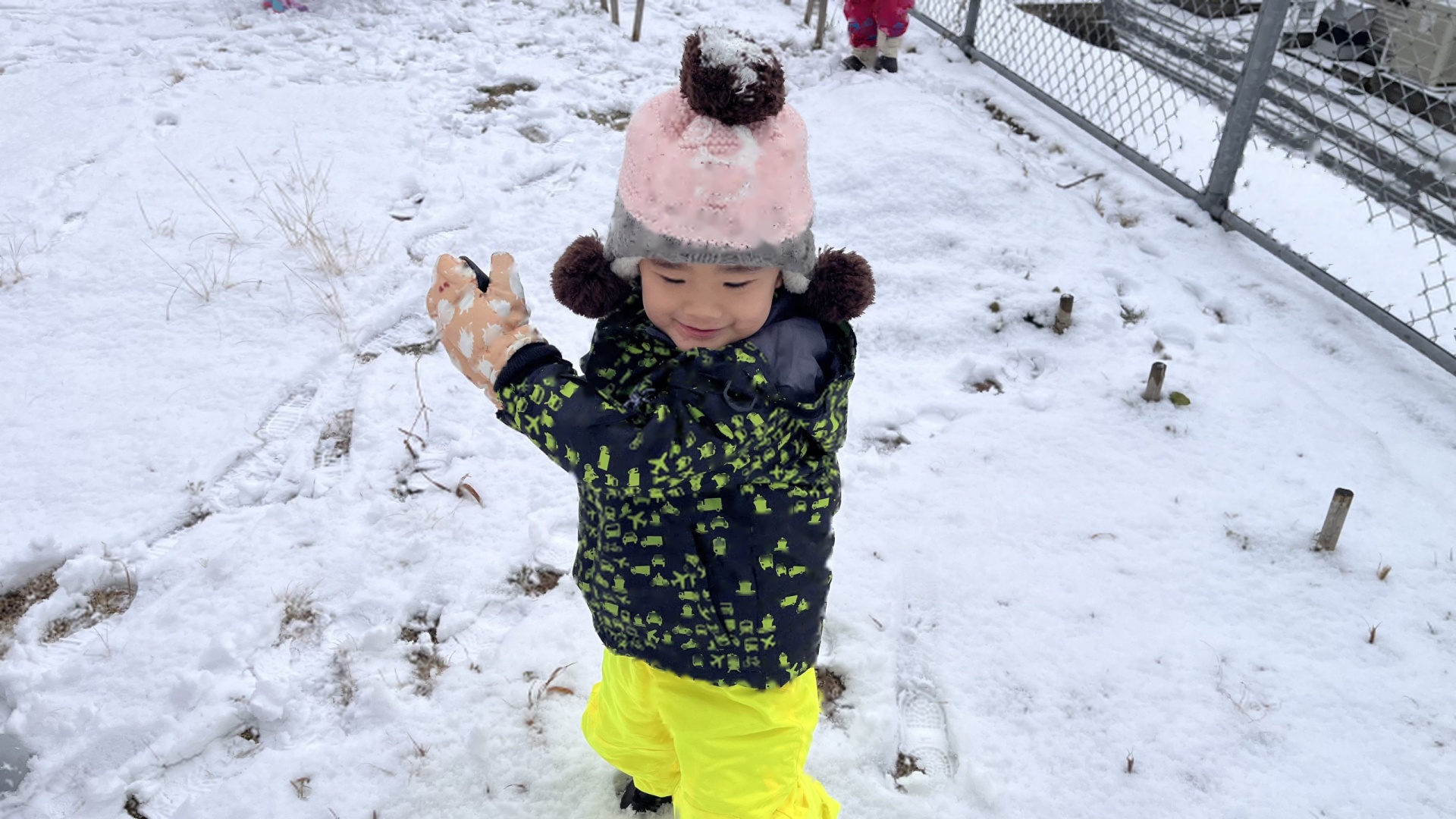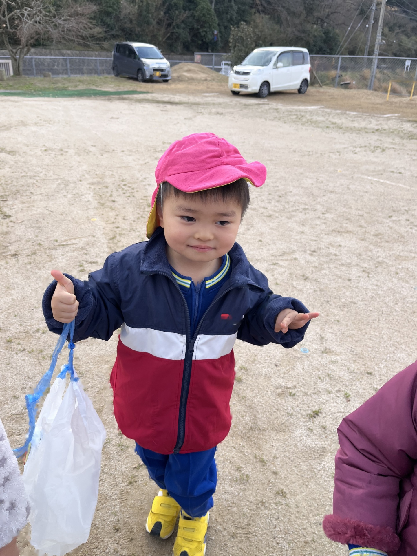 今日は、園庭に雪が積もっていて、みんなで雪遊びを楽しみました。朝から雪が降っていることを喜んだり、雪遊びできるかな・・・と楽しみにしたりする姿がたくさん見られたたんぽぽ組さん!雪遊びの服も自分で袋から出して、先生や友達と一緒に着替えることも楽しみにしていた様子でした。雪の中に足を入れるとふわふわだったようで、「雲みたいだね!」「ふわふわしてる!」と大興奮の子ども達でした!手袋をはめて雪を触り、みんなで雪合戦したり、雪だるまをつくったりと笑顔いっぱいで楽しんでいました♪